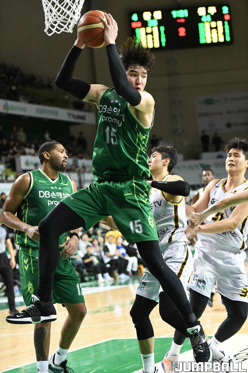 [점프볼=원주/박상혁 기자] 21일 원주종합체육관에서 열린 2023-2024 정관장 프로농구 원주 DB와 창원 LG의 경기, DB 김종규가 리바운드를 잡아내고 있다.