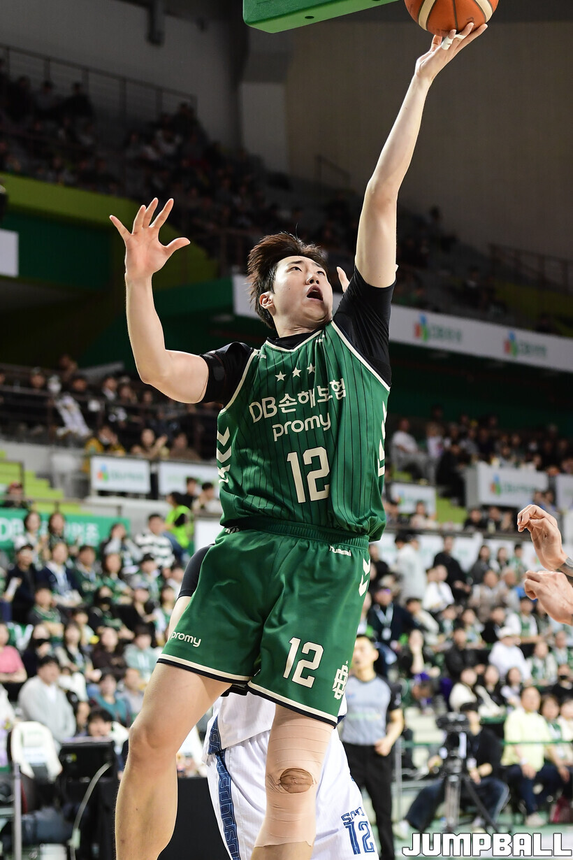 [점프볼=원주/박상혁 기자] 7일 원주 DB 프로미 아레나에서 열린 2025-2026 LG전자 프로농구 원주 DB와 고양 소노의 경기, DB 정효근이 레이업슛을 시도하고 있다.