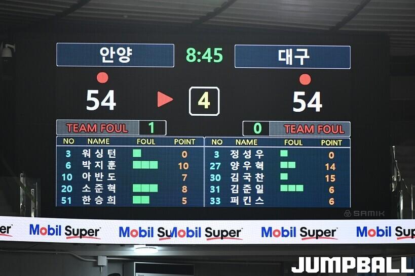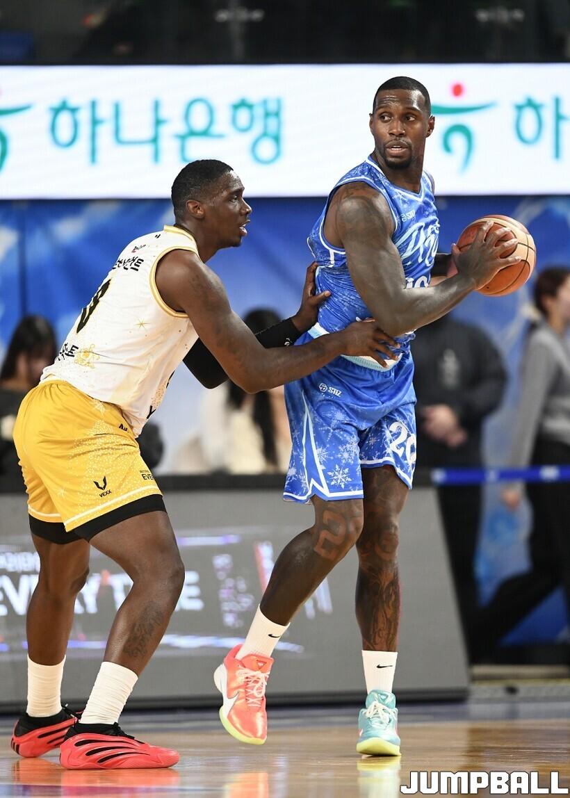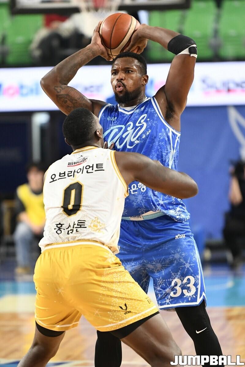 [점프볼=대구/유용우 기자] 20일 대구실내체육관에서 열린 2025-2026 LG전자 프로농구 대구 한국가스공사와 안양 정관장의 경기, 정관장 71-66으로 가스공사에 원정 승리를 거뒀다. 조니 오브라이언트는 20점 10리바운드 더블더블을 기록하며 팀 승리를 이끌었다.