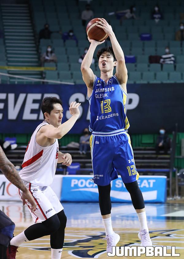 [점프볼=잠실/백승철 기자] 13일 서울 잠실실내체육관에서 열린 2020-2021 현대모비스 프로농구 서울 삼성과 울산 현대모비스의 경기, 삼성 임동섭이 슛을 시도하고 있다.