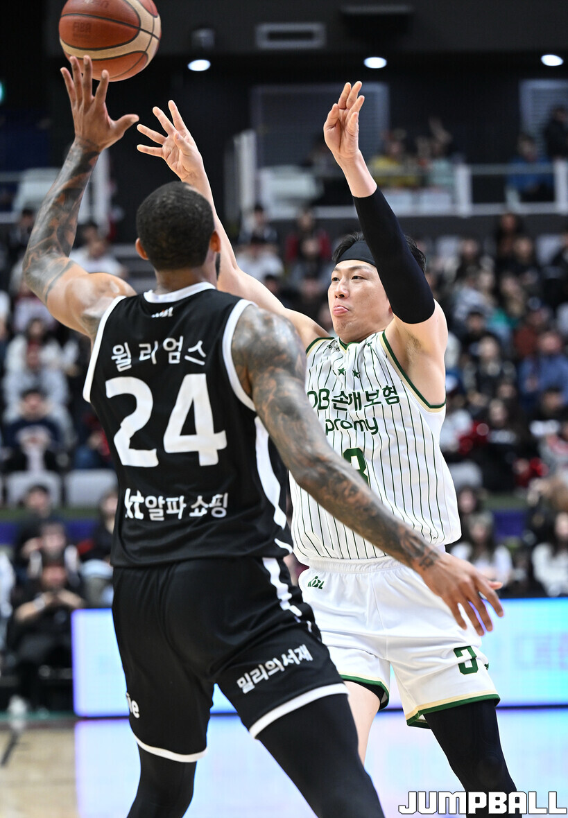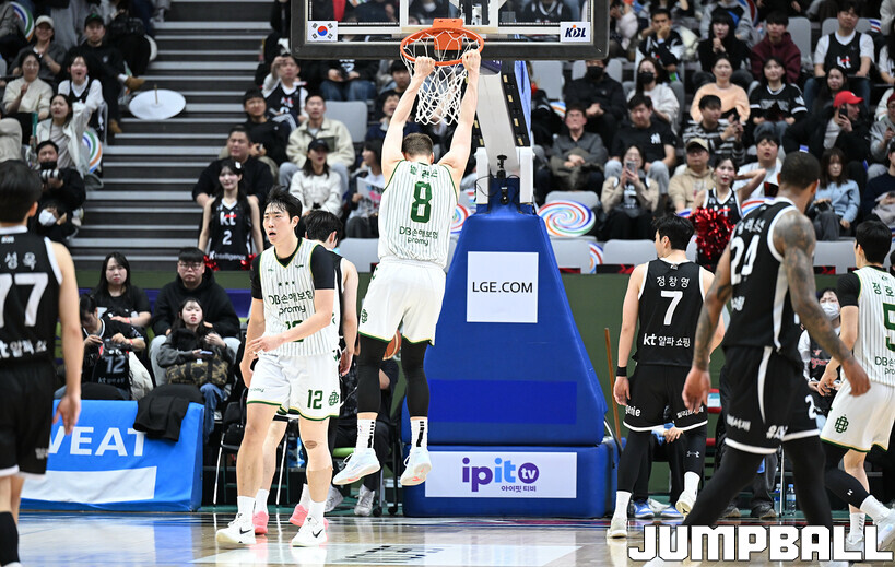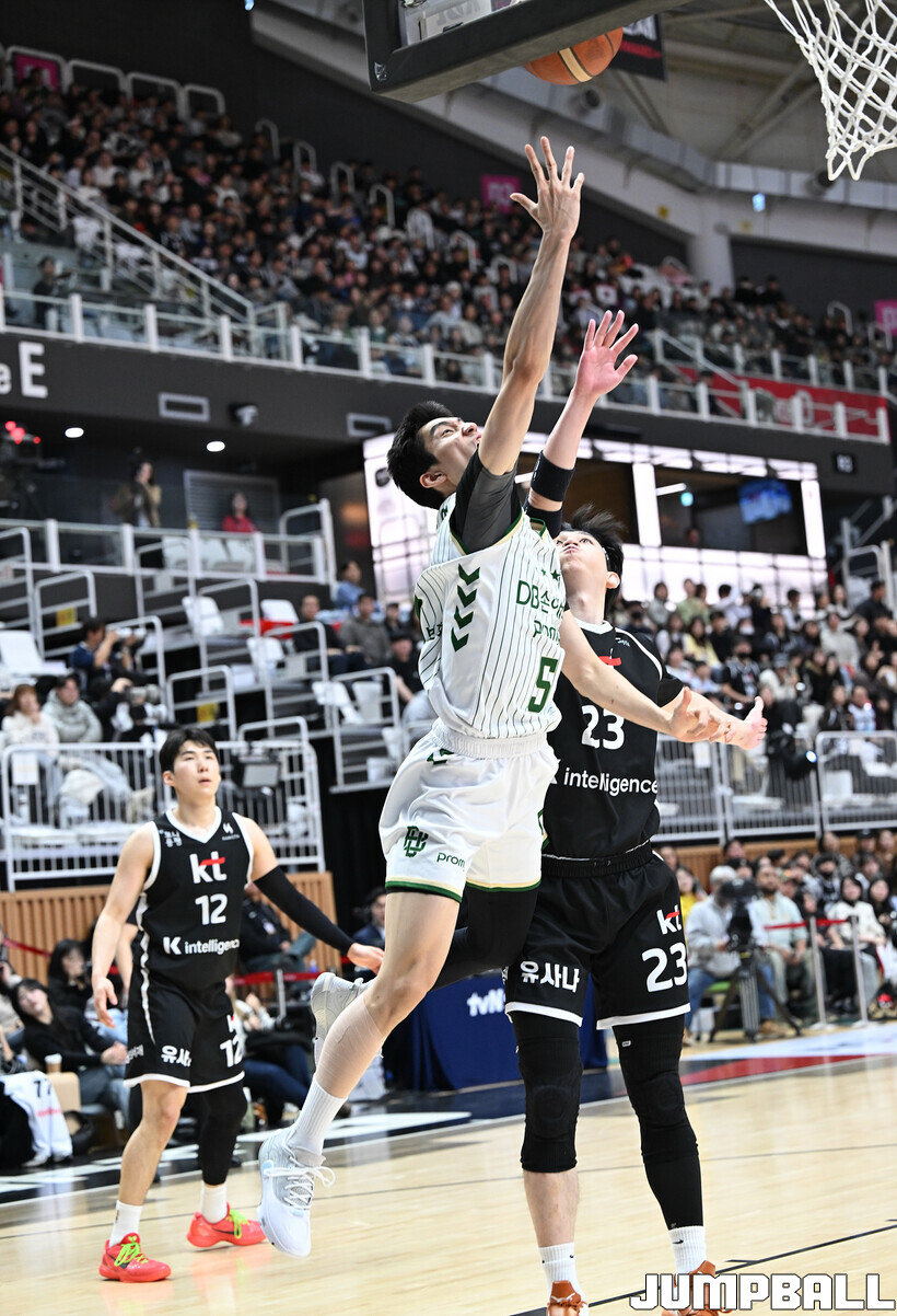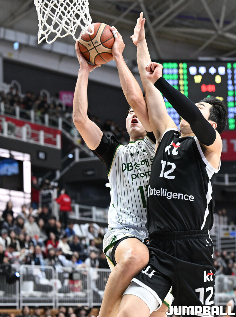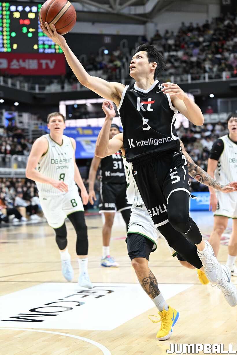 [점프볼=수원/문복주 기자] 원주 DB는 1일 수원 KT 소닉붐 아레나에서 열린 2025-2026 LG전자 프로농구 수원 KT와의 맞대결에서 96-89로 승리, 3연승을 기록했다.