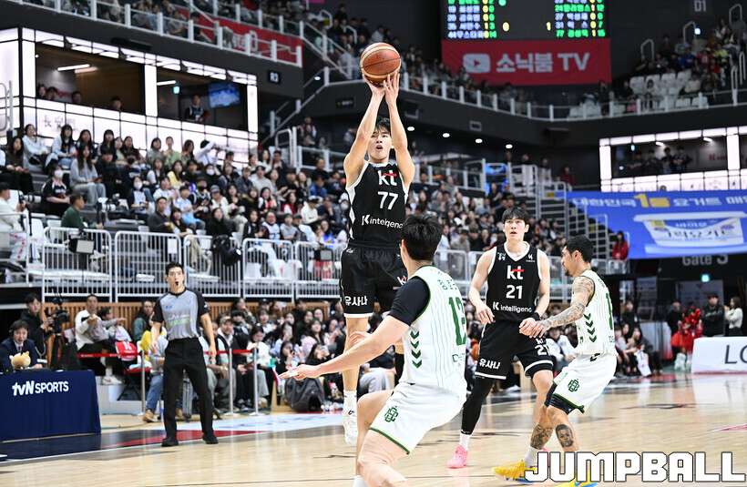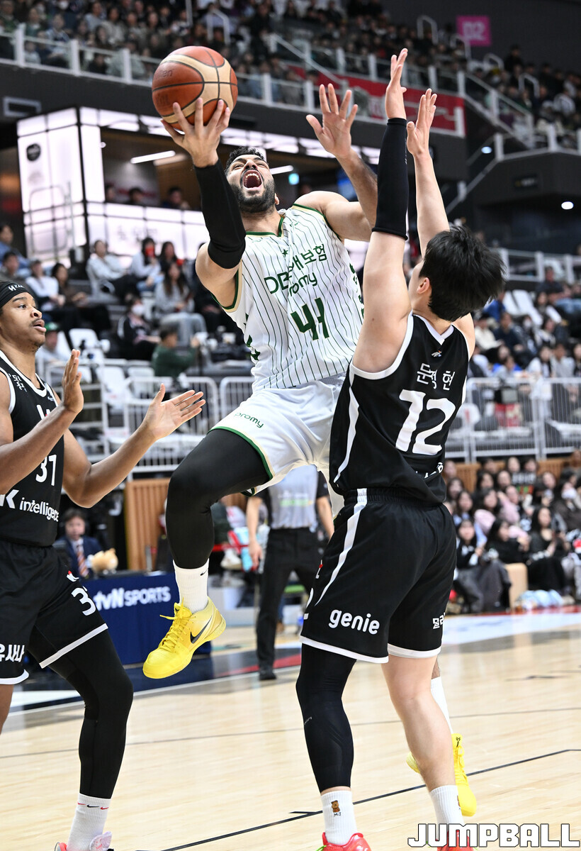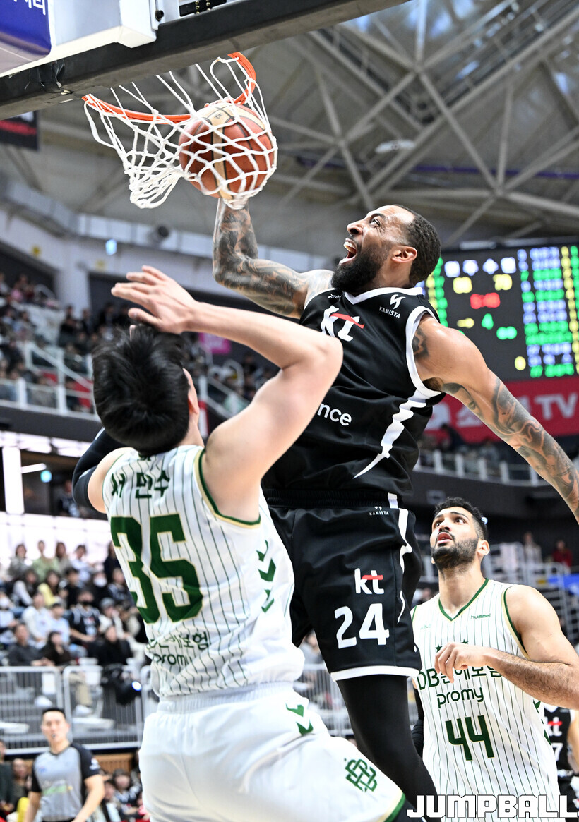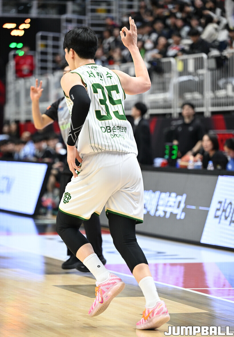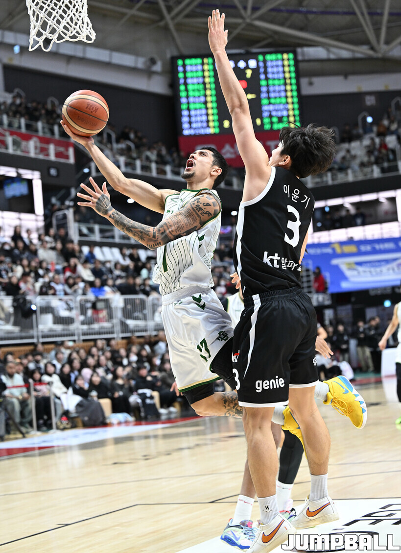 [점프볼=수원/문복주 기자] 원주 DB는 1일 수원 KT 소닉붐 아레나에서 열린 2025-2026 LG전자 프로농구 수원 KT와의 맞대결에서 96-89로 승리, 3연승을 기록했다.