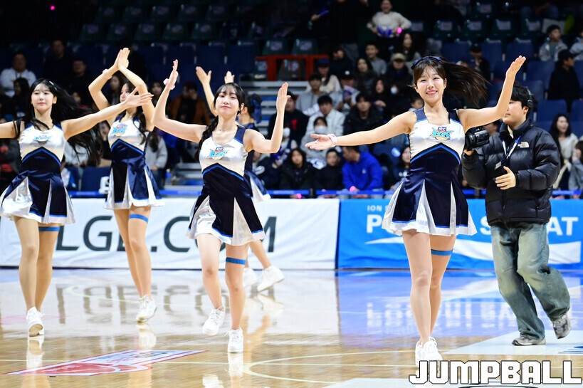 [점프볼=부산/박상혁 기자] 10일 부산사직체육관에서 열린 2025-2026 LG전자 프로농구 부산 KCC와 대구 한국가스공사의 경기, KCC 치어리더가 홈 경기 승리를 위해 열띤 응원을 선보였다.