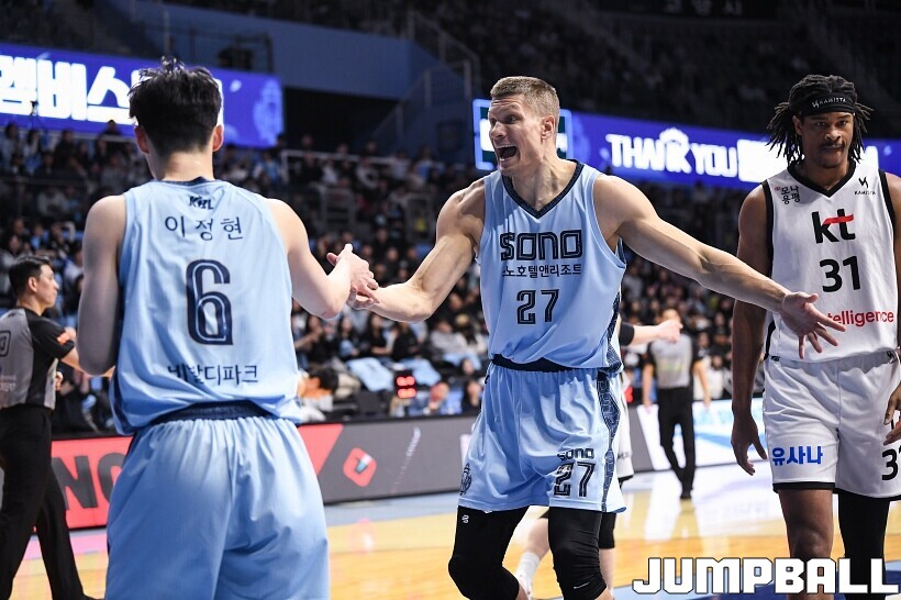 [점프볼=고양/유용우 기자] 7일 고양소노아레나에서 열린 2025-2026 LG전자 프로농구 고양 소노과 수원 KT의 경기, 소노가 92-78로 승리하며 3연승을 질주했다.