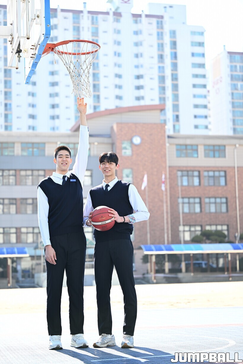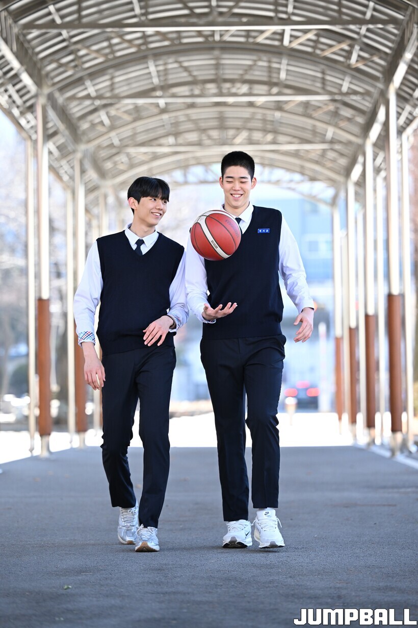 건우_지훈이 형은 정식농구를 늦게 시작했지만 중학교 때부터 판을 바꿀 정도로 영향력이 컸어요. 고등학교에 진학해서는 성장곡선이 더 가파른 것 같고요. 골밑 장악력이 뛰어난 빅맨인데 올해부터는 외곽 플레이도 할 거기 때문에 코트 위에서 영향력이 더 커질 것 같아요.