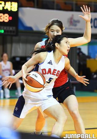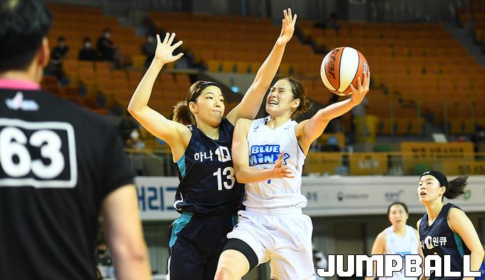 [점프볼=청주/문복주 기자] 17일 청주체육관에서 열린 '2020 우리은행 박신자컵 서머리그' 하나원큐와 삼성생명의 경기, 삼성생명 이민지가 골밑을 저돌적으로 파고들어 득점을 노리고 있다.