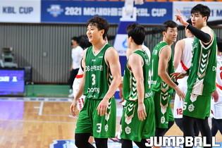 17일 경상북도 상주시 상주실내체육관에서 열린 2021 MG새마을금고 KBL컵 대회 수원 KT와 서울 SK의 4강 경기, DB 선수들이 결승 상대를 관전하기위해 관중석에서 경기를 관전하고 있다.