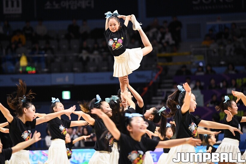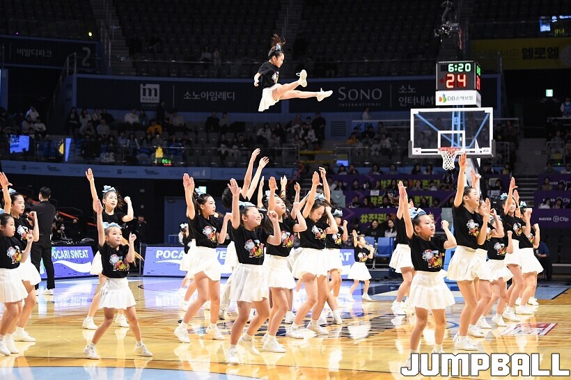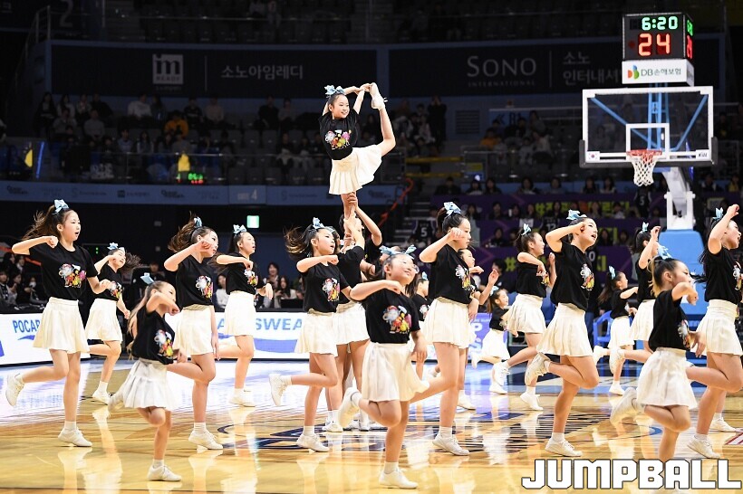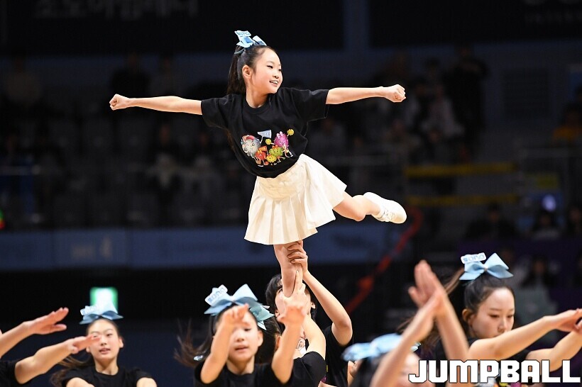 [점프볼=고양/유용우 기자] 7일 고양소노아레나에서 열린 2025-2026 LG전자 프로농구 고양 소노과 수원 KT의 경기, 소노 치어리더들이 홈팬들의 함성을 이끌고 있다. 어린이 치어리더 엔젤킹도 귀여운 퍼포먼스를 펼치며 팬들에게 응원전의 즐거움을 전했다.