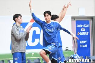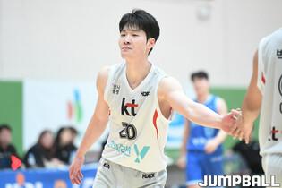 [점프볼=이천/박상혁 기자] 21일 이천 LG챔피언스파크에서 열린 2024-2025 KBL D리그 한국가스공사와 KT의 경기, KT 박지원이 속공을 시도하고 있다.