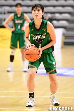 [점프볼=수원/박상혁 기자] 8일 서수원칠보체육관에서 열린 2021 KUSF 대학농구 U리그 단국대와 광주대의 여자부 4강 경기, 광주대 양지원이 레이업슛을 시도하고 있다.