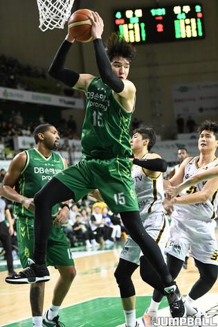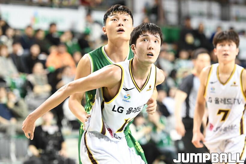 [점프볼=원주/박상혁 기자] 21일 원주종합체육관에서 열린 2023-2024 정관장 프로농구 원주 DB와 창원 LG의 경기, LG 김준형이 박스 아웃을 하고 있다.