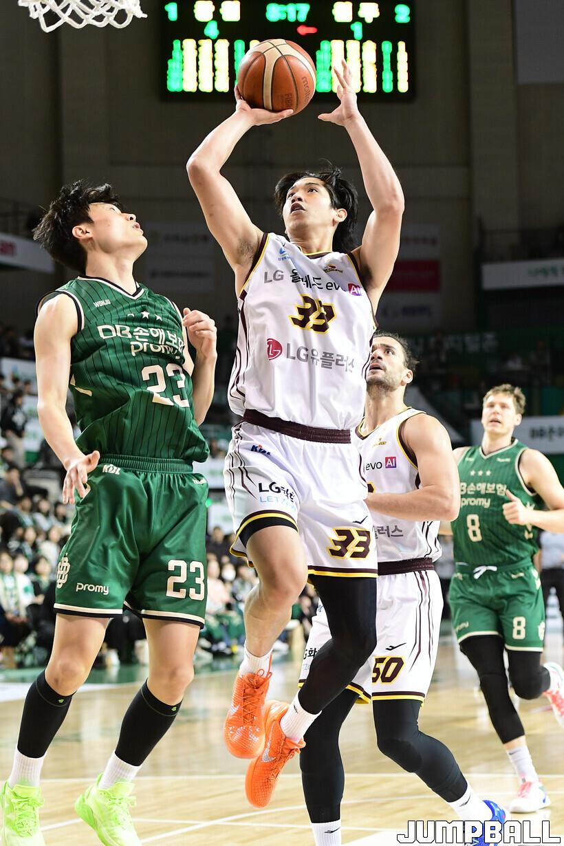 [점프볼=원주/박상혁 기자] 8일 원주 DB 프로미 아레나에서 열린 2025-2026 LG전자 프로농구 원주 DB와 창원 LG의 경기, LG 타마요가 슛을 시도하고 있다.