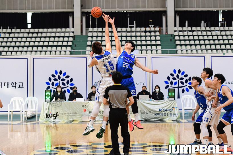 4일 명지대 체육관에서 열린 2022 KUSF 대학농구 U리그 명지대와 단국대의 경기, 점프볼로 경기가 시작되었다.