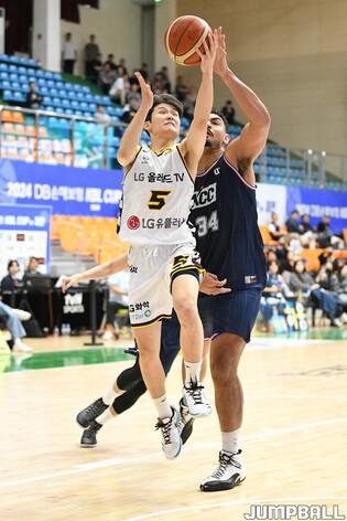 [점프볼=제천/유용우 기자] 10일 제천체육관에서 열린 2024 DB손해보험 KBL 컵대회 in 제천 창원 LG와 부산 KCC의 경기, LG 전성현이 3점슛을 시도하고 있다.