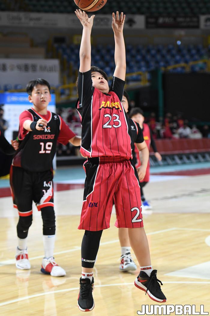 [점프볼=창원/박상혁 기자] 6일 창원실내체육관에서 열린 2020-2021 KBL 유소년 주말리그 C권역 U10 LG와 KT의 경기, LG 김준수가 골밑슛을 시도하고 있다.