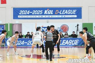 [점프볼=이천/박상혁 기자] 25일 이천 LG 챔피언스파크에서 열린 2024-2025 KBL D리그 울산 현대모비스와 수원 KT의 준결승 경기, 현대모비스 박구영 코치가 선수들에게 작전 지시를 하고 있다.