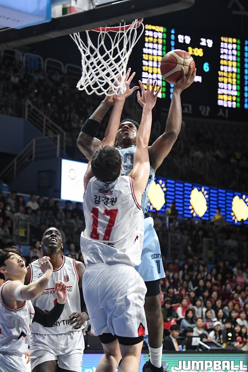 [점프볼=고양/유용우 기자] 5일 고양 소노아레나에서 열린 2025-2026 LG전자 프로농구 고양 소노와 안양 정관장의 경기, 소노 네이던 나이트가 공격을 시도하고 있다.