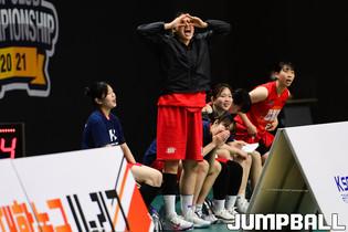 [점프볼=수원/박상혁 기자] 9일 서수원칠보체육관에서 열린 2021 KUSF 대학농구 U-리그 부산대와 단국대의 여대부 결승전 경기, 단국대 김태유 감독이 선수들에게 작전 지시를 내리고 있다.