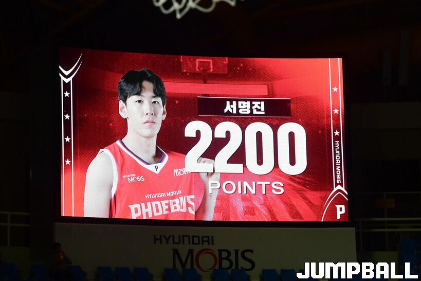 [점프볼=울산/박상혁 기자] 9일 울산동천체육관에서 열린 2025-2026 LG전자 프로농구 울산 현대모비스와 안양 정관장의 경기, 현대모비스 서명진이 KBL 통산 2200득점을 달성했다.