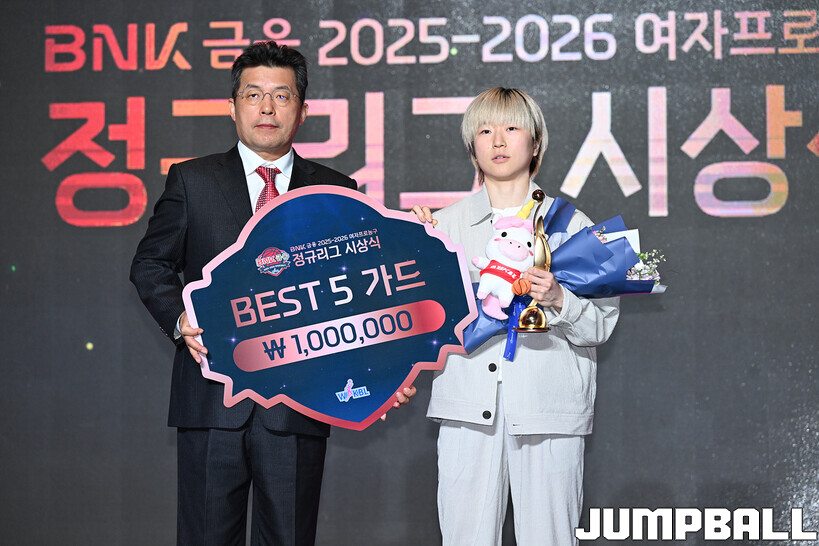 [점프볼=용산/문복주 기자] 6일 용산구 서울드래곤시티 그랜드볼룸 한라홀 3층에서 260406 BNK금융 2025-2026 여자프로농구 정규리그 시상식,