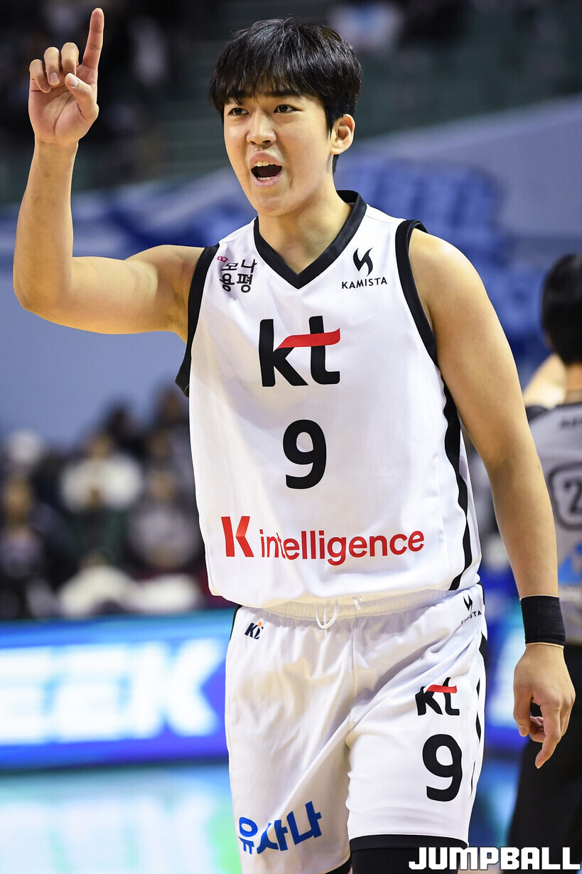 [점프볼=잠실/유용우 기자] 24일 잠실실내체육관에서 열린 2025-2026 LG전자 프로농구 서울 삼성과 수원 KT의 경기, KT 박지원이 작전을 지시하고 있다.