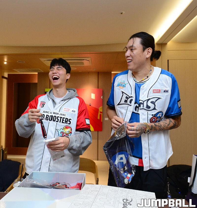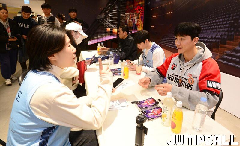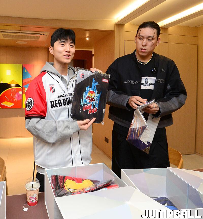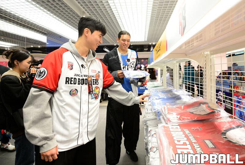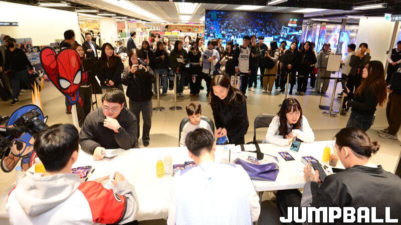 [점프볼=잠실 김종원 기자] KBL은 28일 서울 송파구 롯데백화점 잠실점에서 월트디즈니 컴퍼니 코리아와 협업한 '마블 KBL 팝업스토어' 오픈 행사를 진행됐다. 팝업스토어에 참석한 이재도, 최준용, 박지훈이 시딩 박스 언박싱과 팬사인회를 가졌다.
