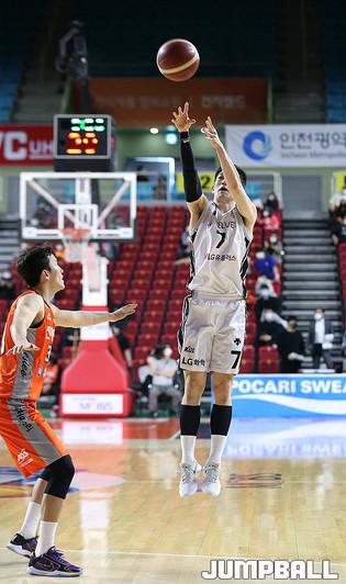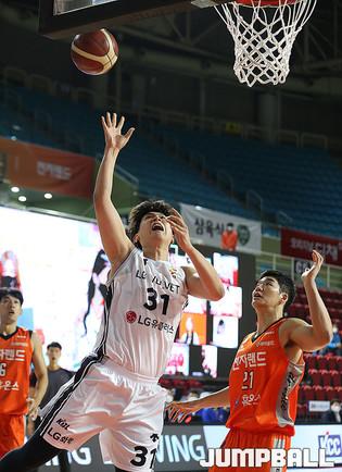 [점프볼=인천/한명석 기자] 17일 인천삼산체육관에서 열린 2020-2021 현대모비스 프로농구 인천전자랜드와 창원LG와의 경기, 창원 LG 정희재 선수가 더블 수비를 뚫고 있다.