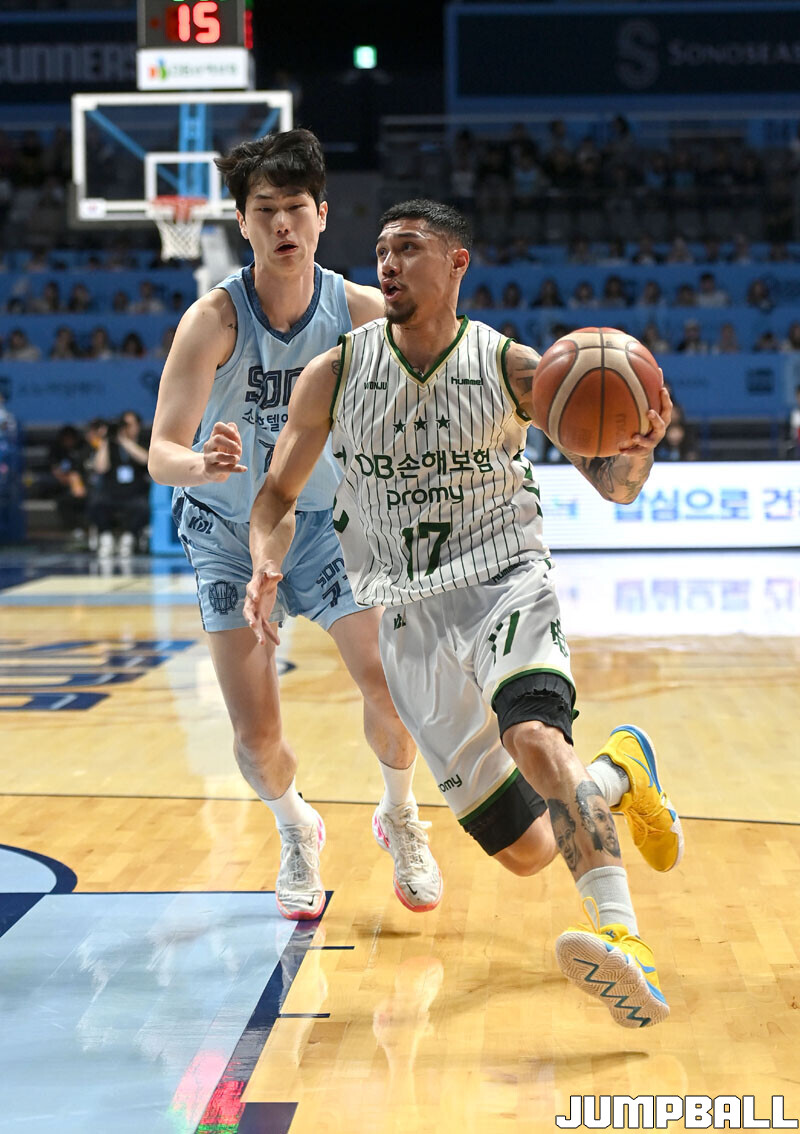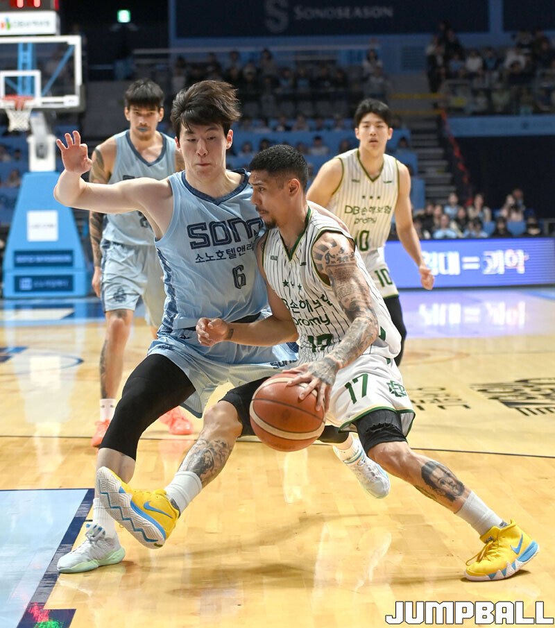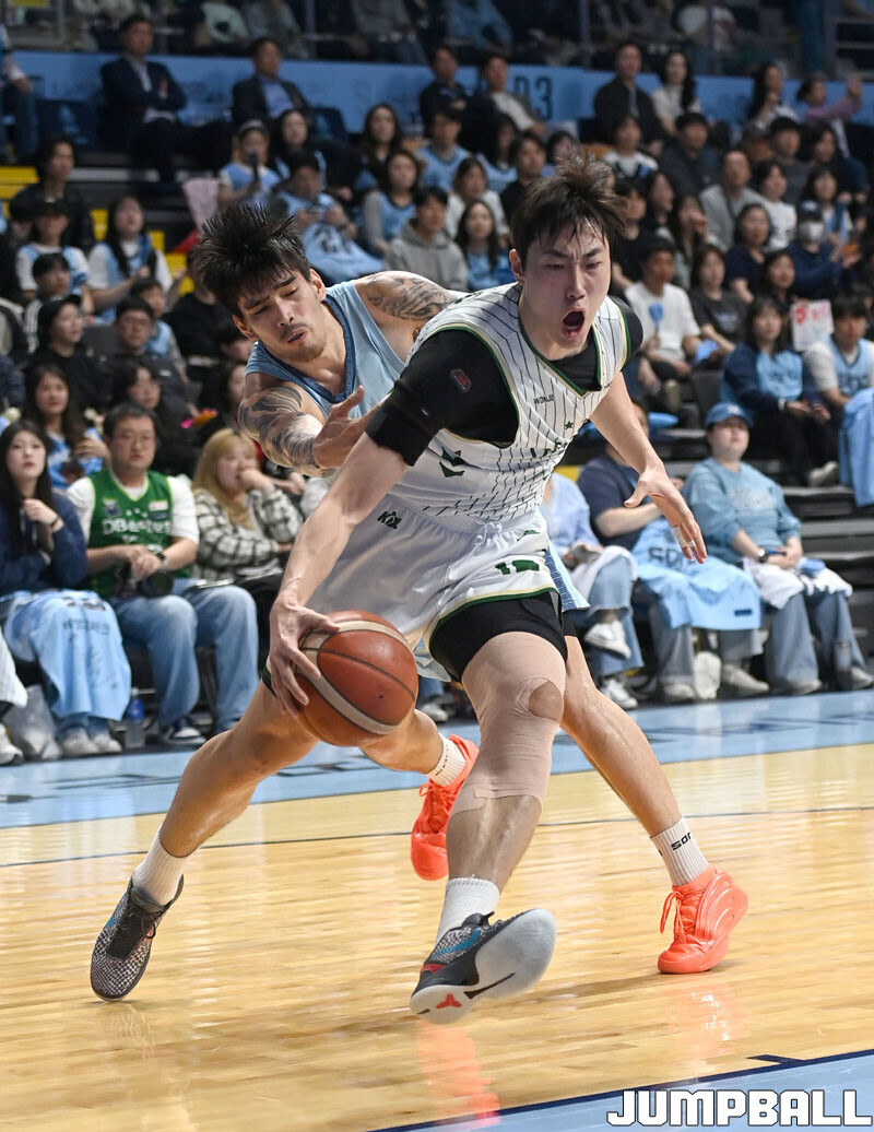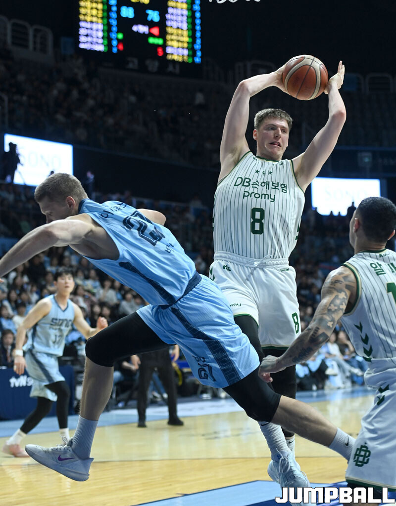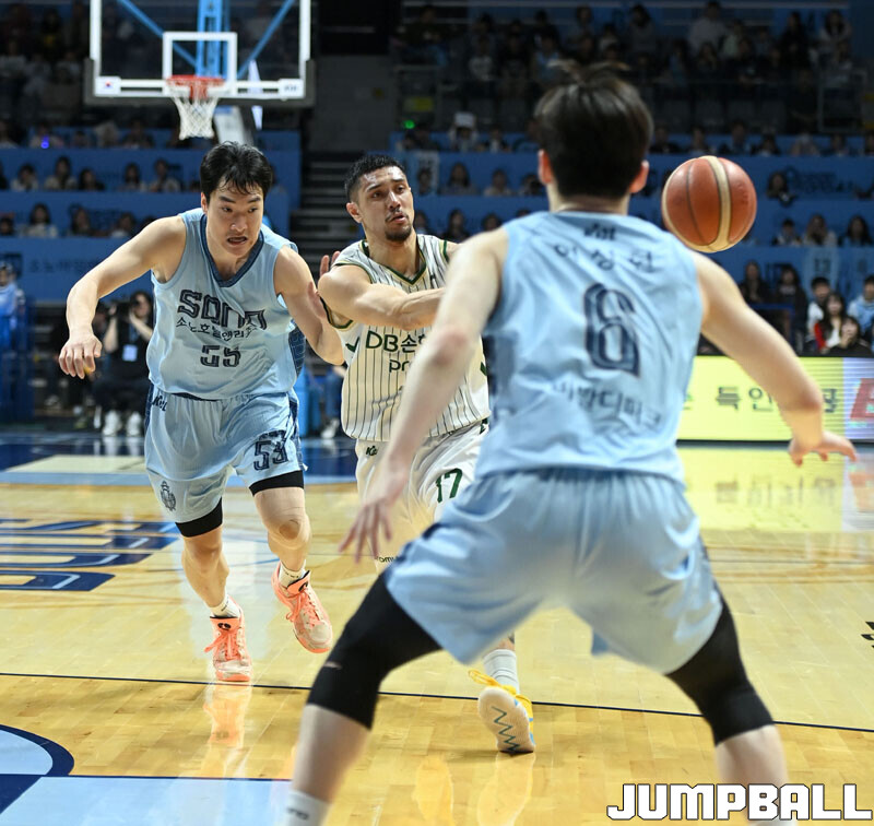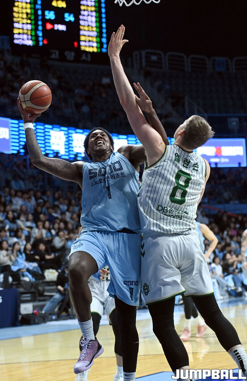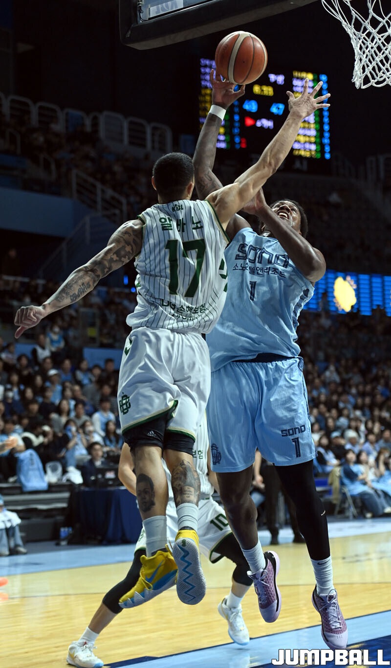 [점프볼=고양/김종원 기자] 28일 고양 소노 아레나에서 열린 2025-2026 LG전자 프로농구 정규시즌 고양 소노와 원주 DB 경기에서 DB가 헨리 엘런슨의 38점 11리바운드을 앞세서 92-81 승리하며 소노의 11연승을 저지했다.