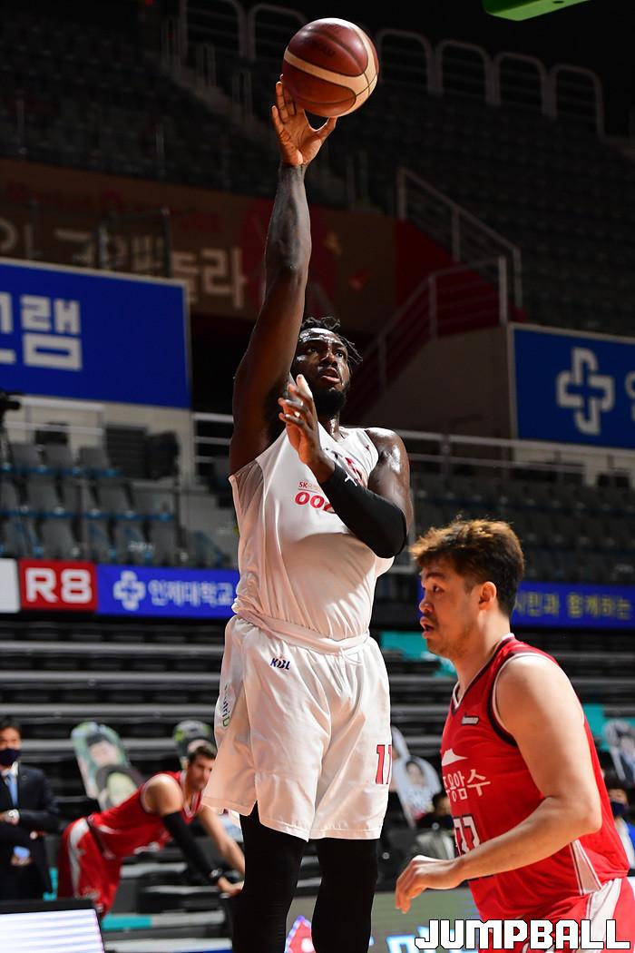 [점프볼=고양/박상혁 기자] 12일 고양체육관에서 열린 2020-2021 현대모비스 프로농구 고양 오리온과 서울 SK의 경기, 오리온이 홈에서 SK에 75-70으로 승리했다. 오리온과 SK 경기 화보