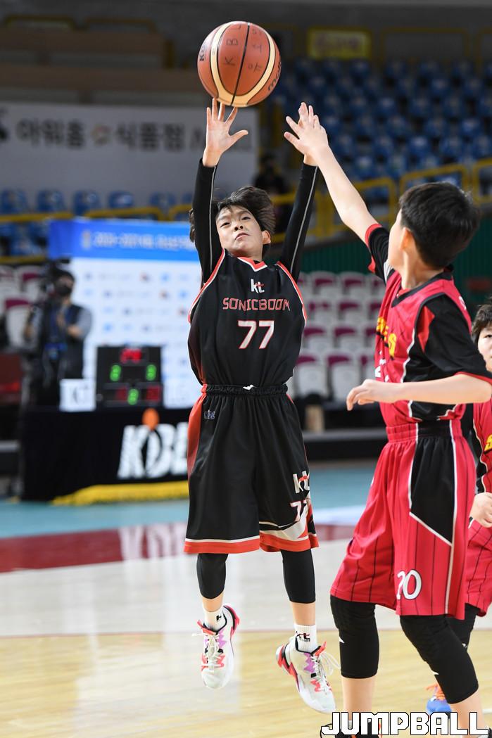 [점프볼=창원/박상혁 기자] 6일 창원실내체육관에서 열린 2020-2021 KBL 유소년 주말리그 C권역 U10 LG와 KT의 경기, KT 유지원이 슛을 시도하고 있다.