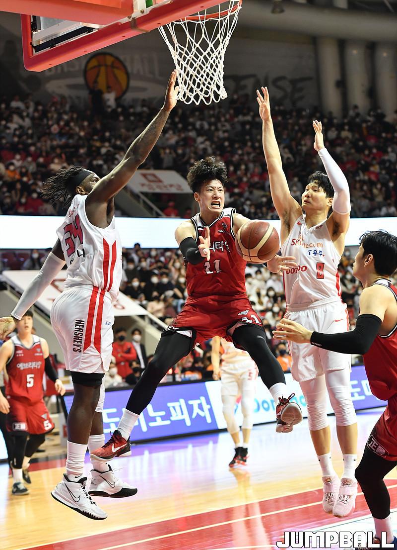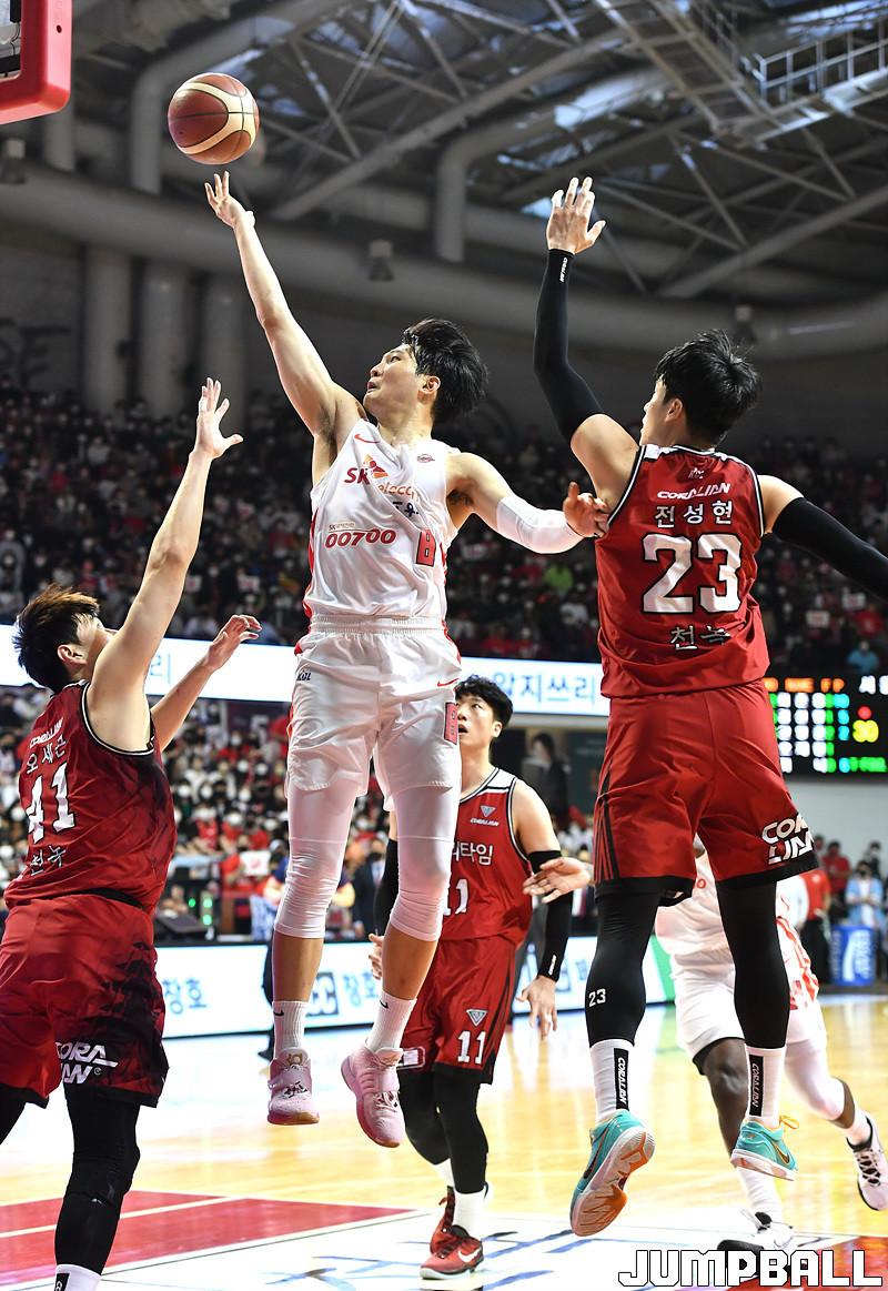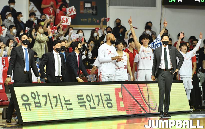 서울 SK는 8일 안양체육관에서 열린 2021-2022 KGC인삼공사 정관장 프로농구 안양 KGC와의 챔피언결정전 4차전에서 94-79로 승리했다.