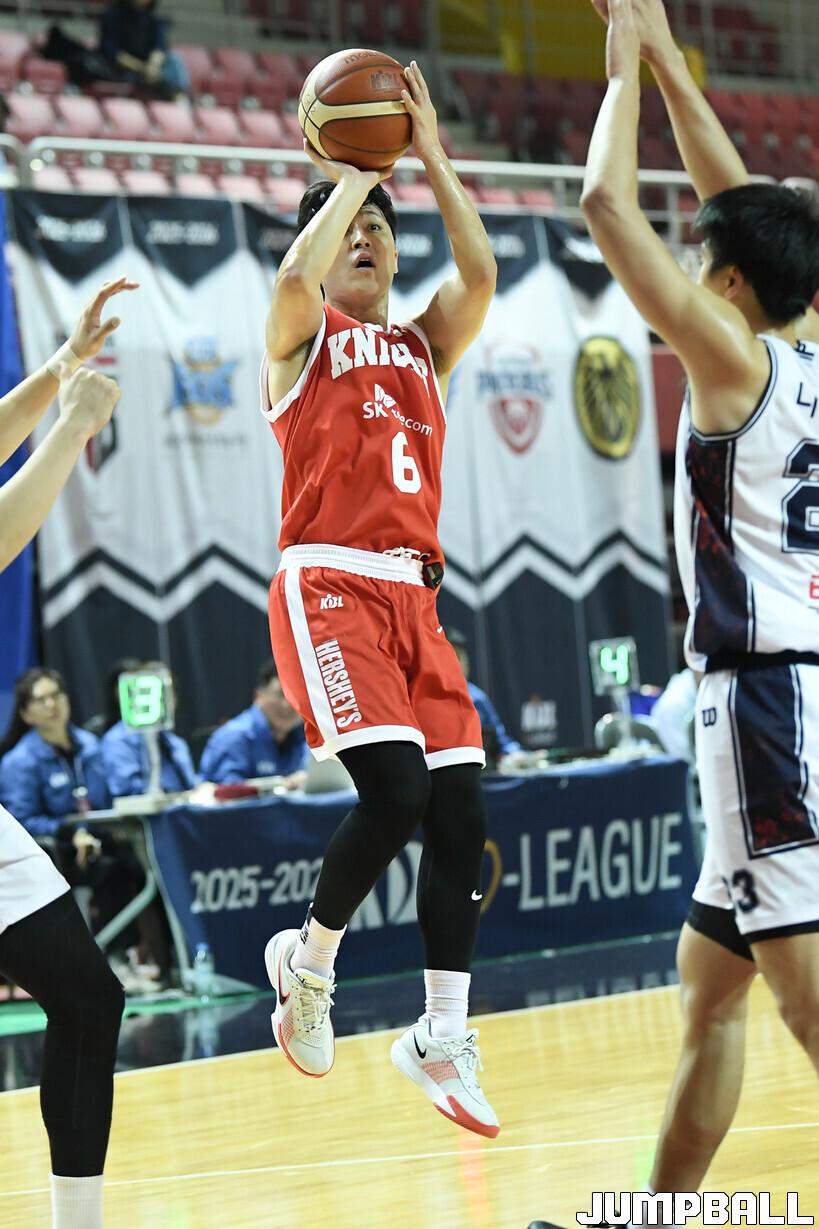 [점프볼=용인/유용우 기자] 24일 경희대 선승관 체육관에서 열린 2025-2026 KBL D리그 서울 SK와 부산 KCC의 경기, SK가 71-54로 KCC에 승리했다. SK 선상혁은 19점 10리바운드 더블더블을 기록하며 팀의 승리를 이끌었다.