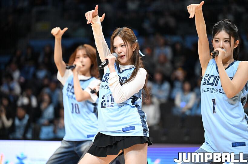 [점프볼=고양/문복주 기자] 27일 고양 소노 아레나에서 열린 2025-2026 LG전자 프로농구 정규시즌 고양 소노와 원주 DB의 경기에서 걸그룹 키라스의 로아 시투와 특별 공연을 했다.