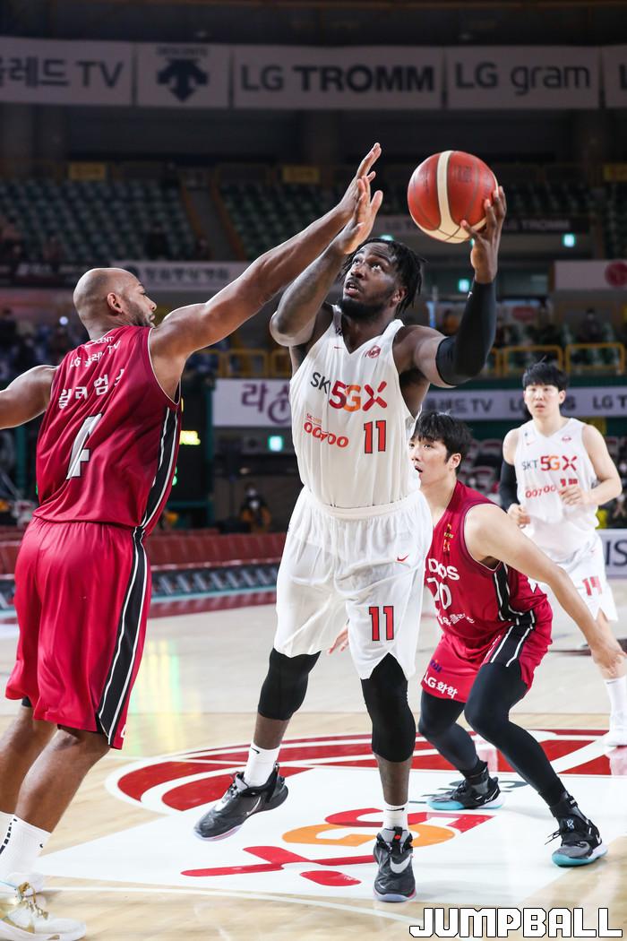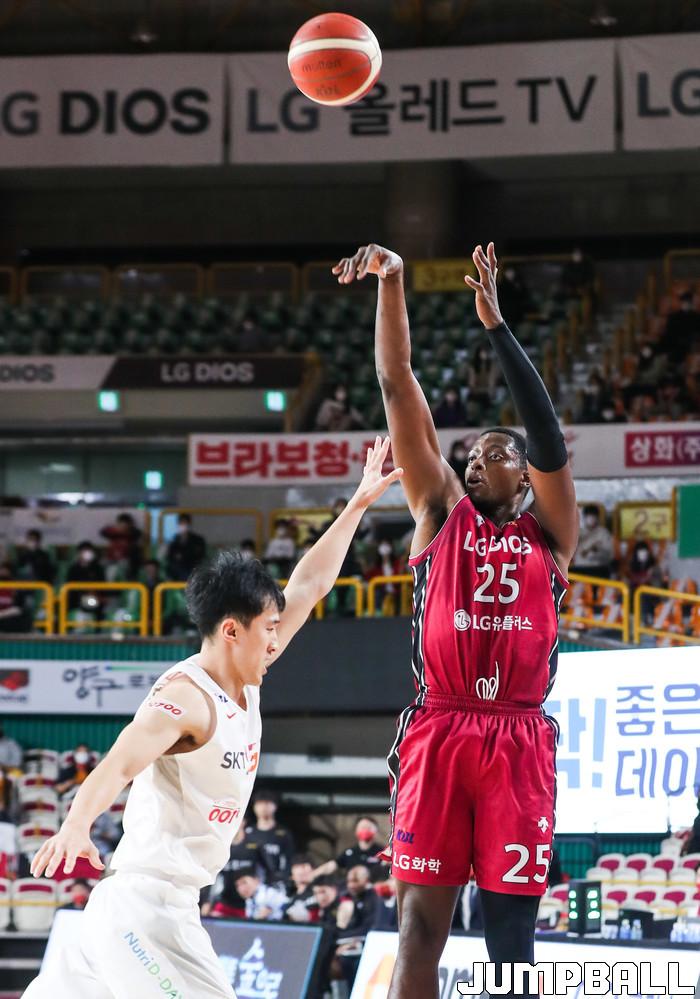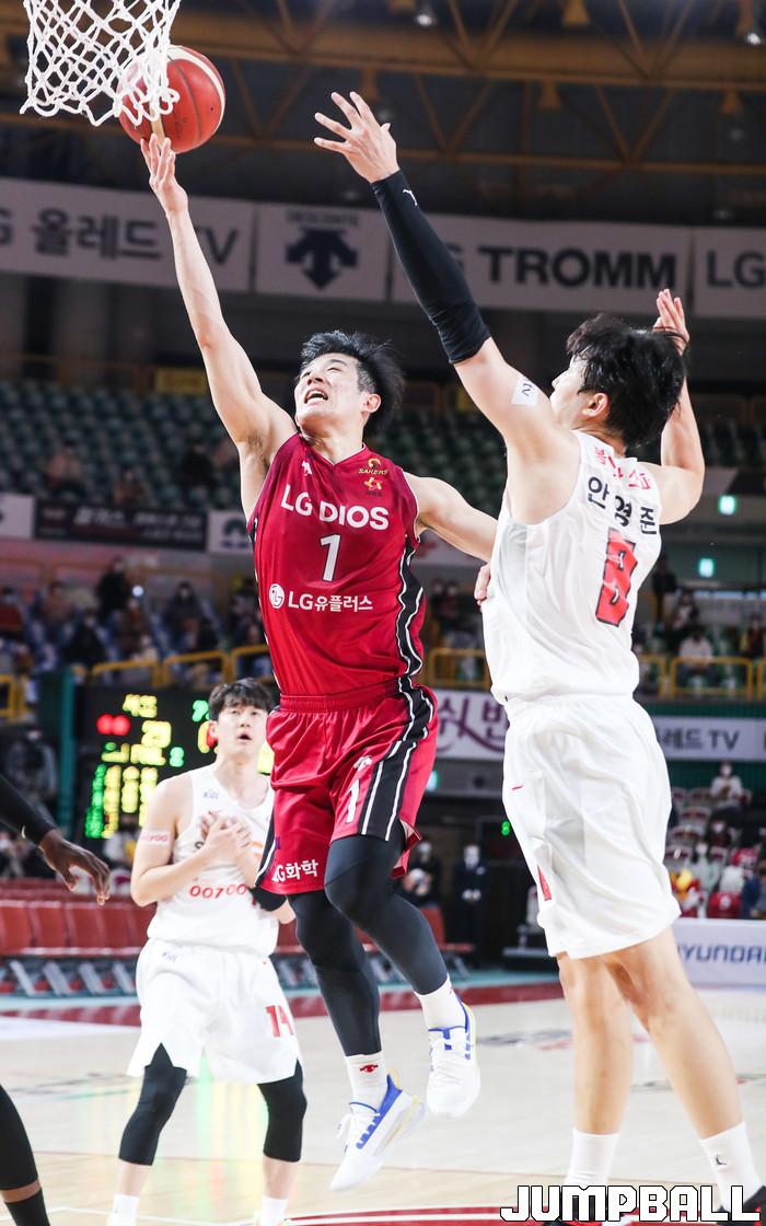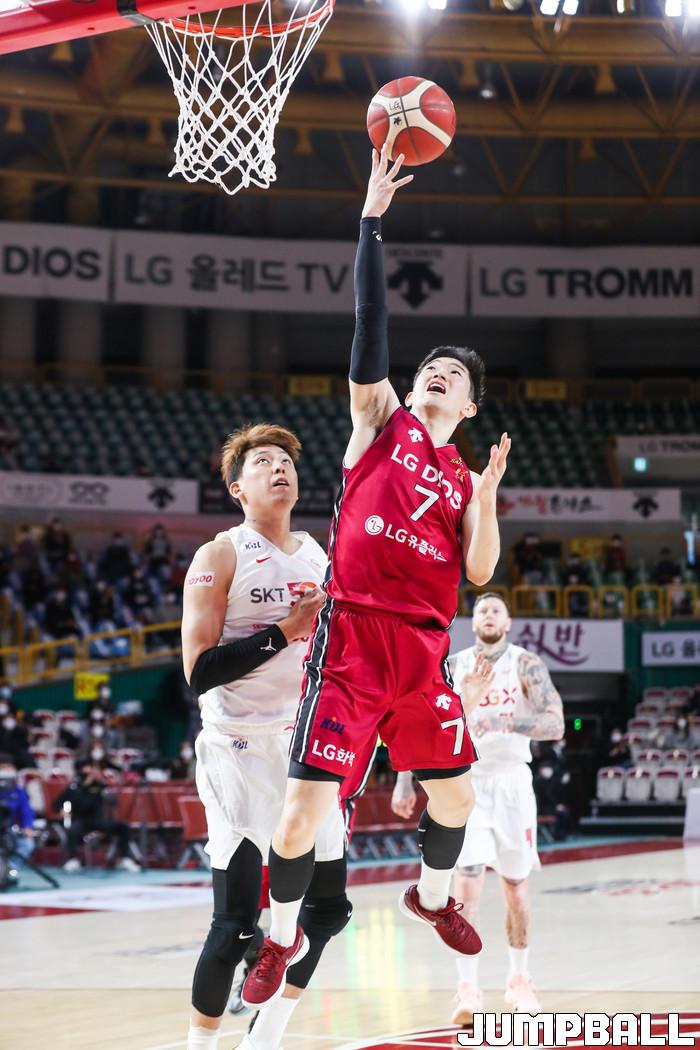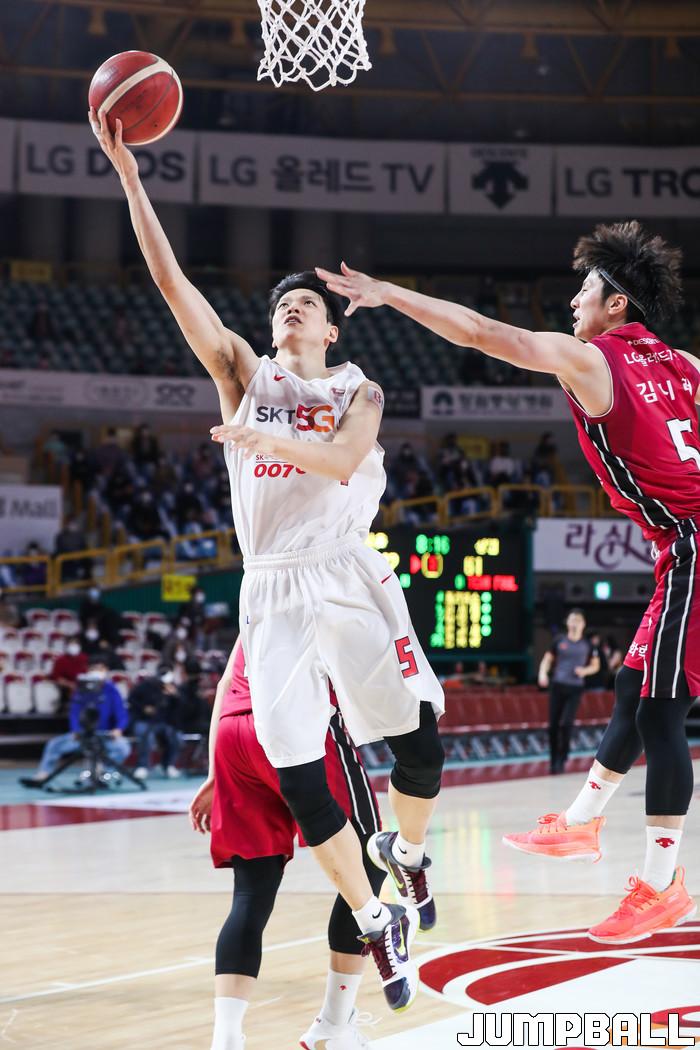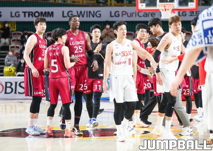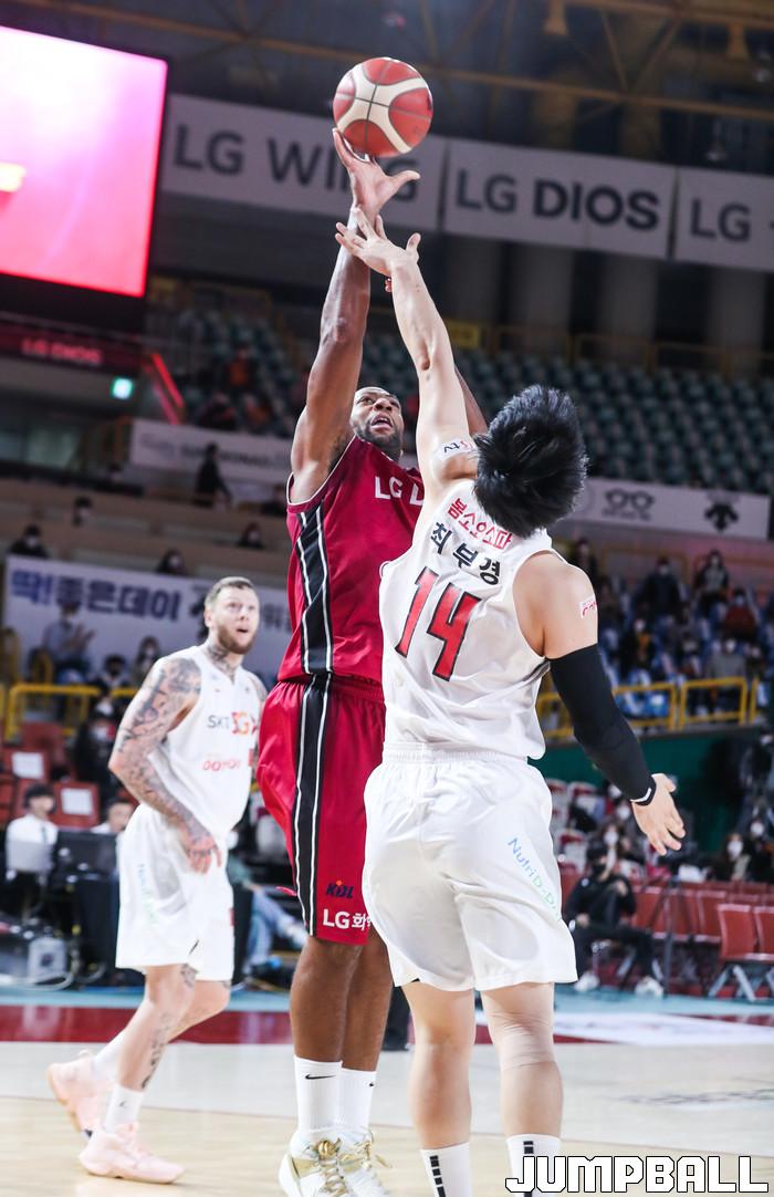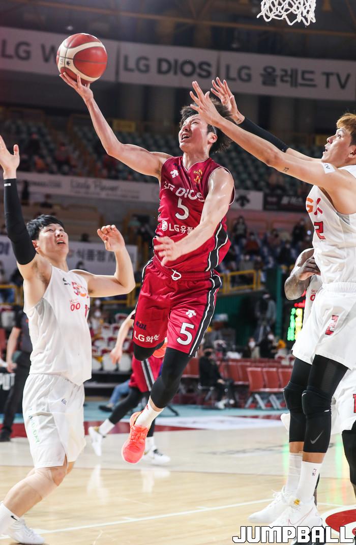 [점프볼=윤민호 기자]1일 창원체육관에서 열린 2020-2021 현대모비스 프로농구 창원 LG와 서울 SK의 경기에서 97-82로 창원 LG가 승리했다.