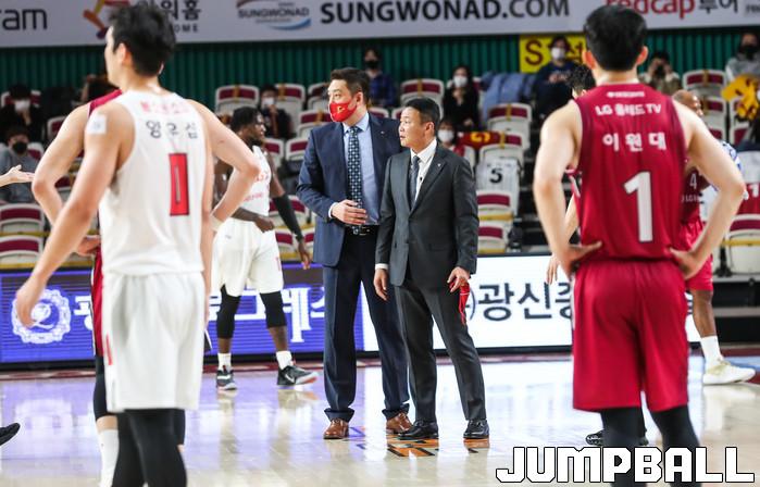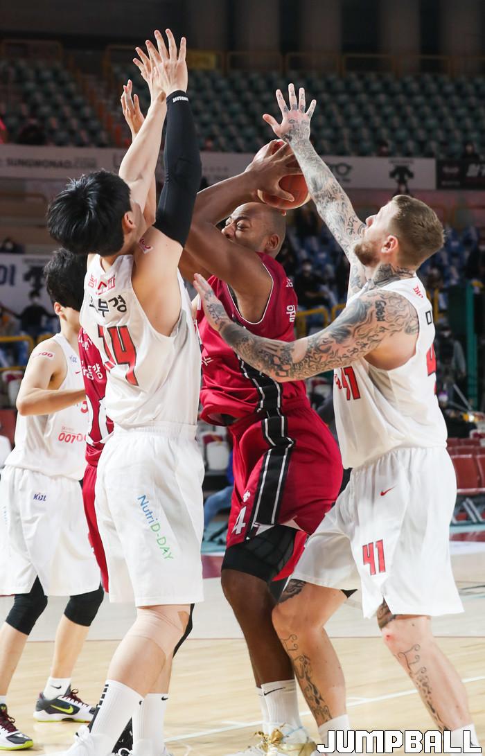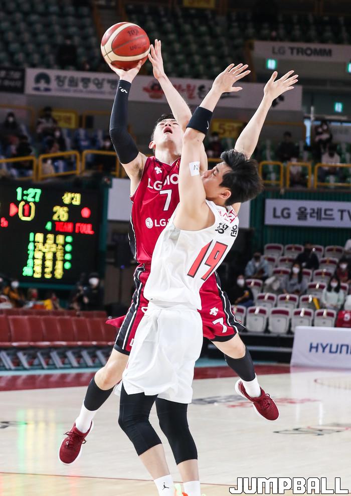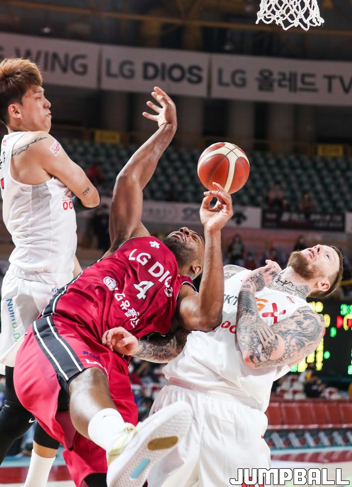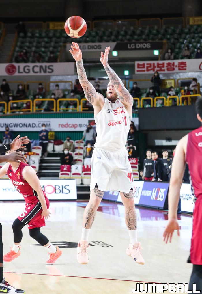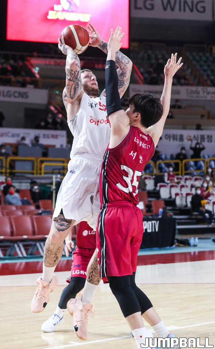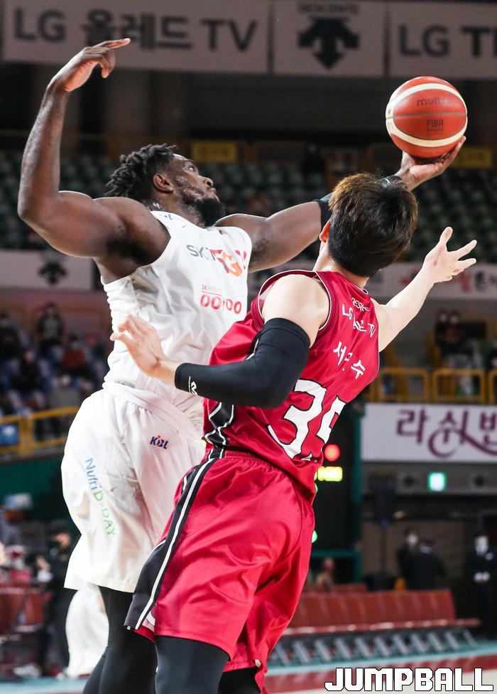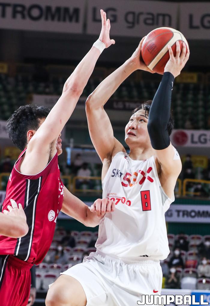 [점프볼=윤민호 기자]1일 창원체육관에서 열린 2020-2021 현대모비스 프로농구 창원 LG와 서울 SK의 경기에서 97-82로 창원 LG가 승리했다.