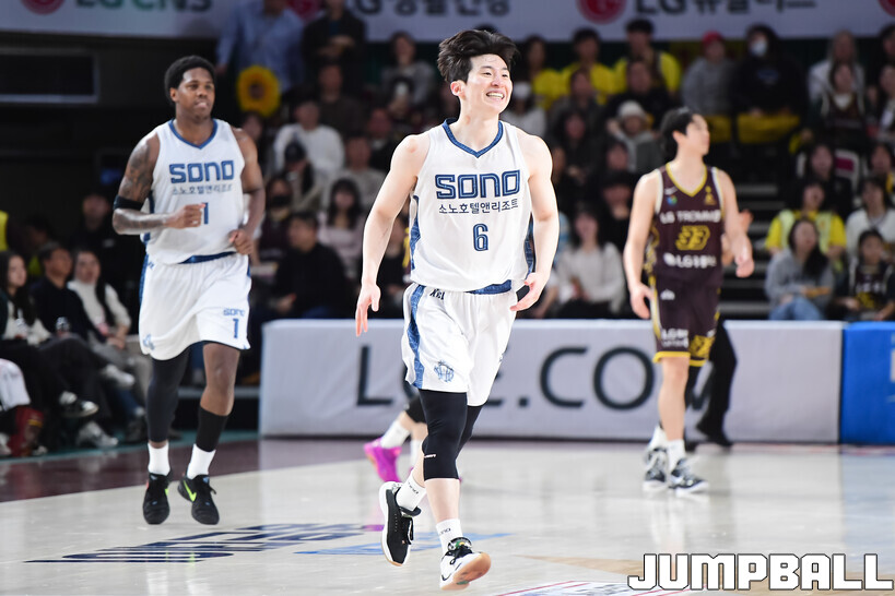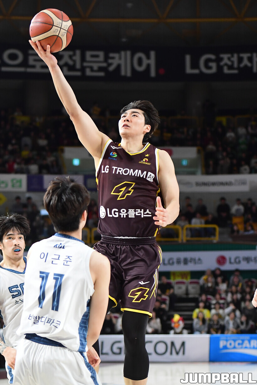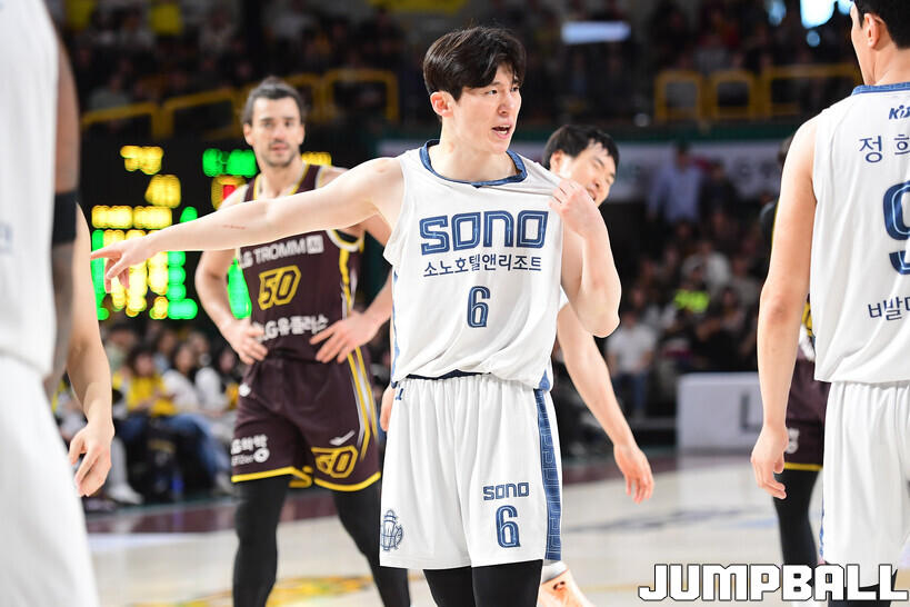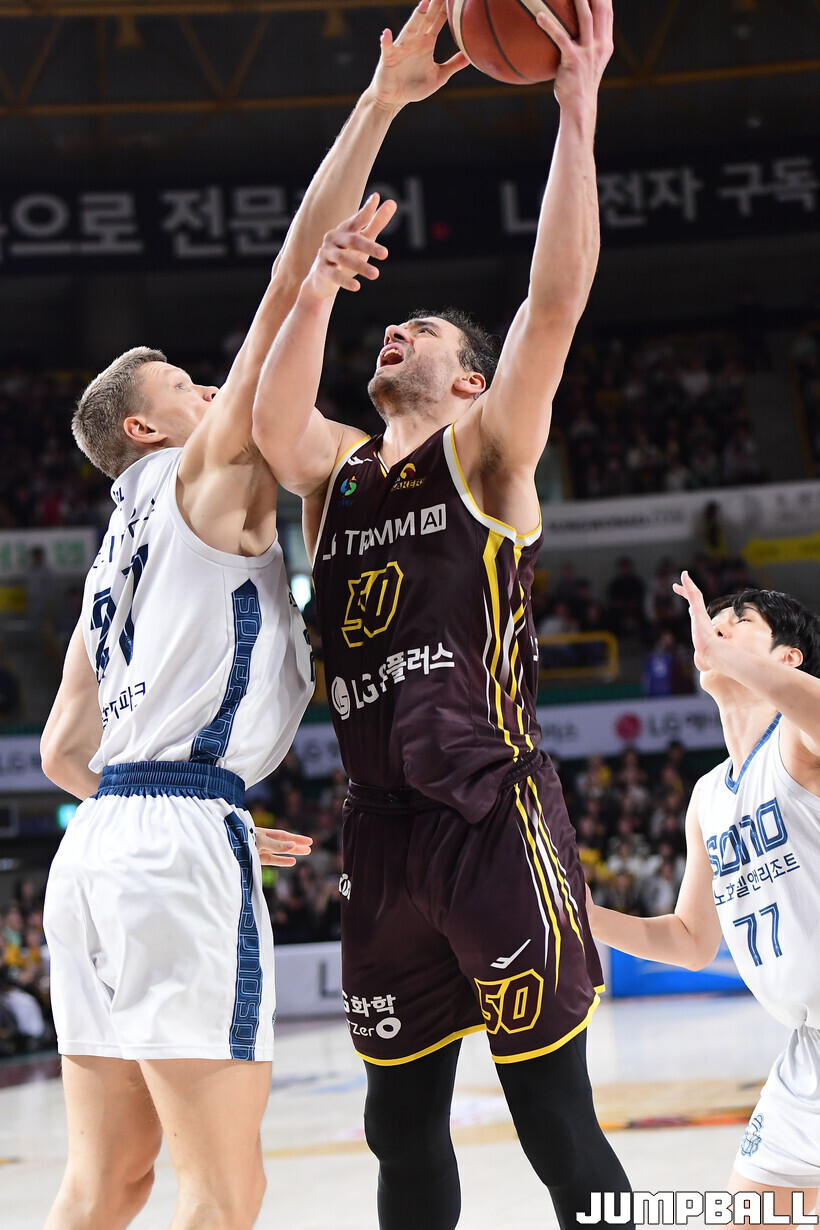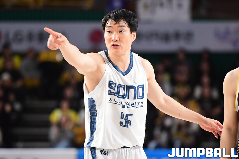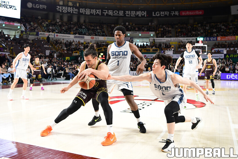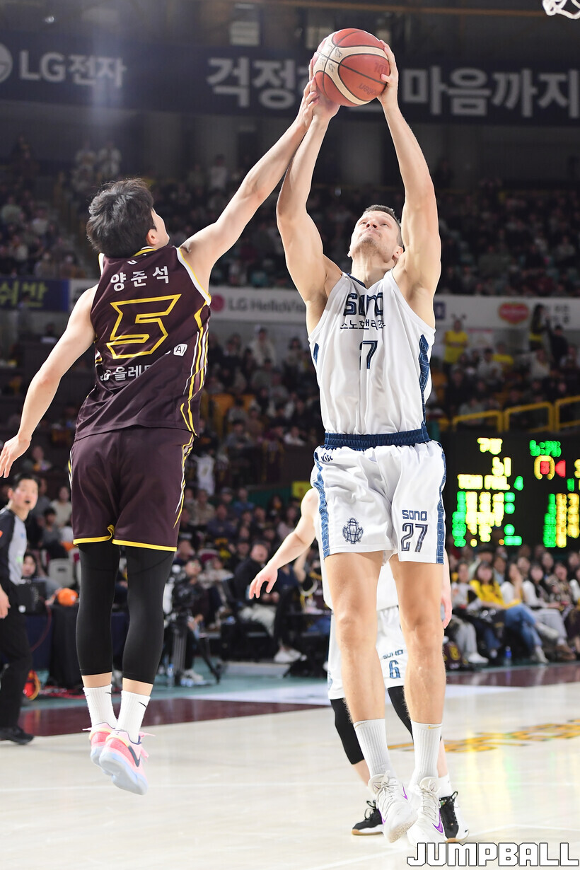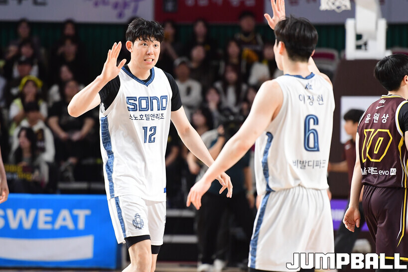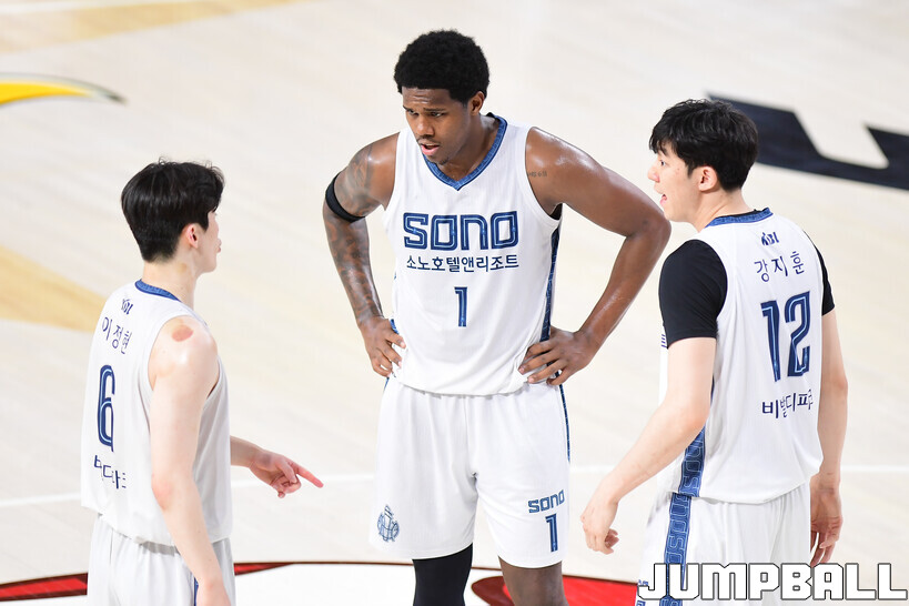 [점프볼=창원/박상혁 기자] 16일 창원체육관에서 열린 2025-2026 LG전자 프로농구 창원 LG와 고양 소노의 경기, 소노가 나이트와 켐바오, 이정현이의 활약으로 아셈 마레이가 분전한 LG에 79-62로 승리했다.