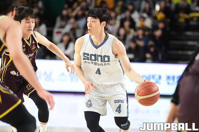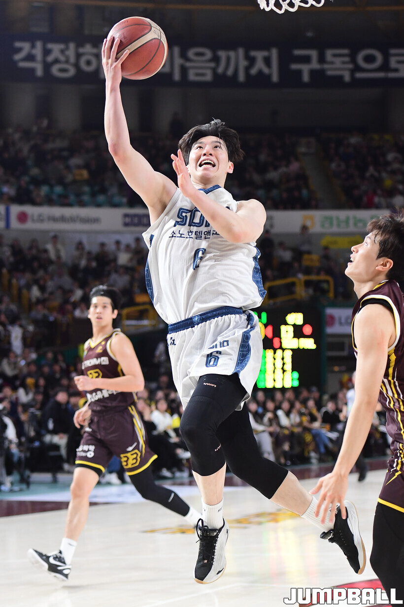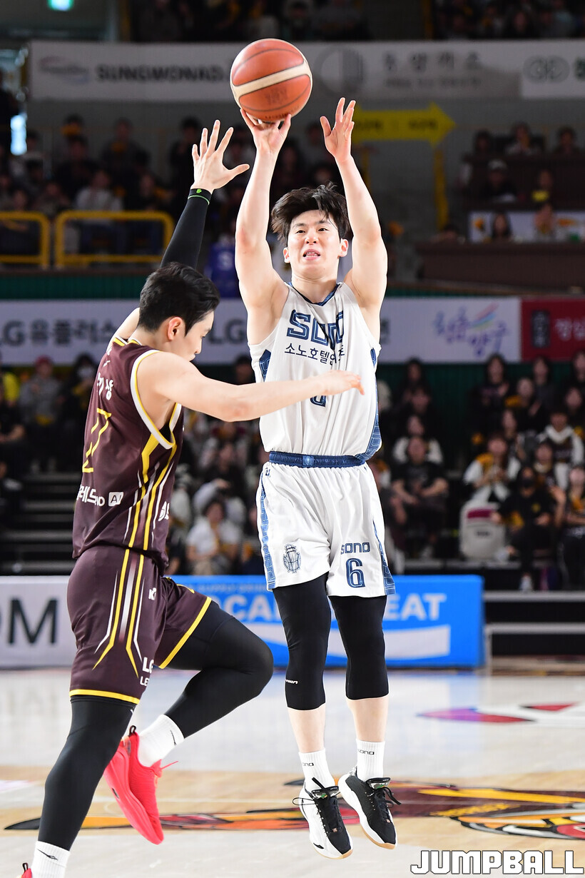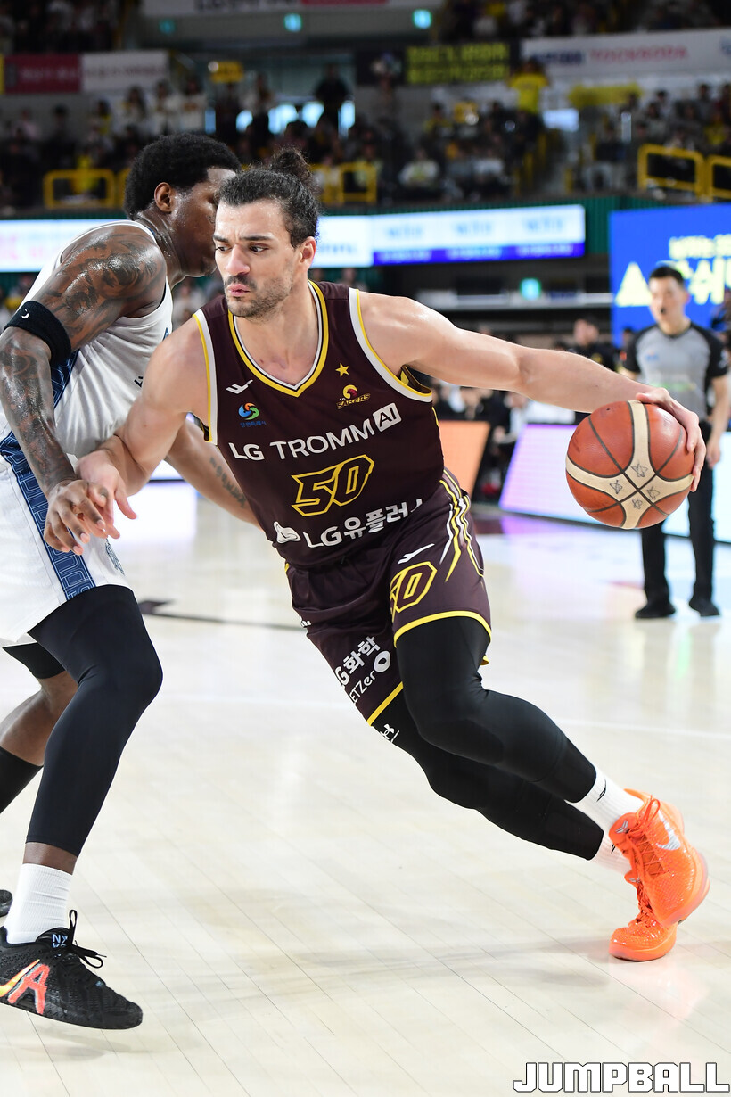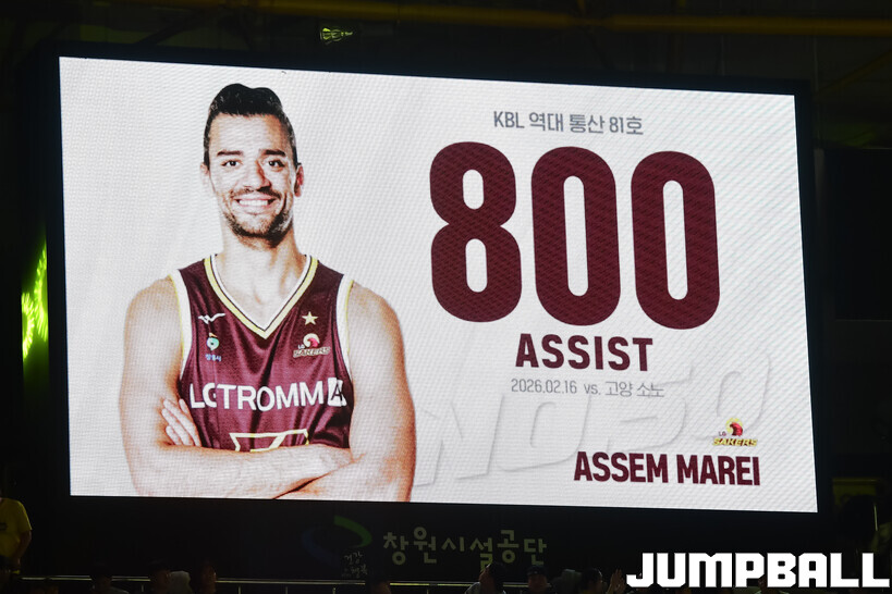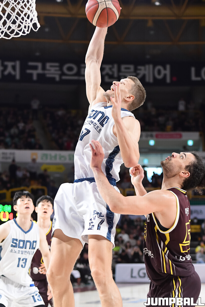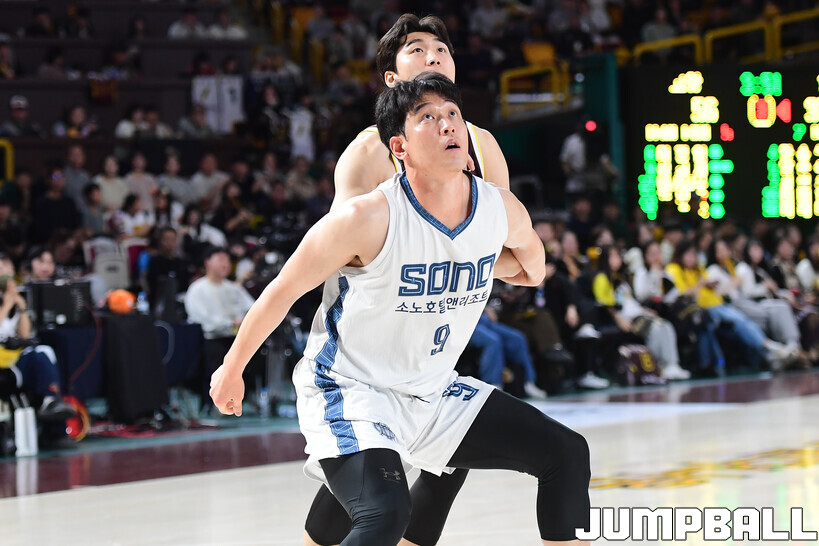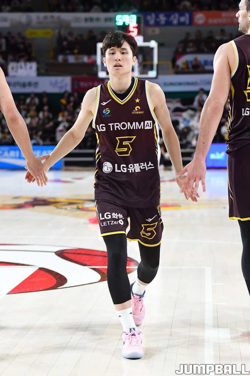 [점프볼=창원/박상혁 기자] 16일 창원체육관에서 열린 2025-2026 LG전자 프로농구 창원 LG와 고양 소노의 경기, 소노가 나이트와 켐바오, 이정현이의 활약으로 아셈 마레이가 분전한 LG에 79-62로 승리했다.