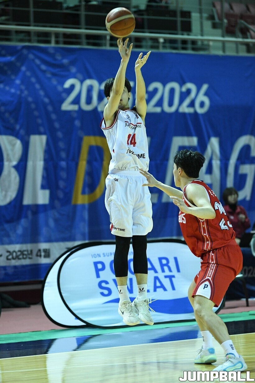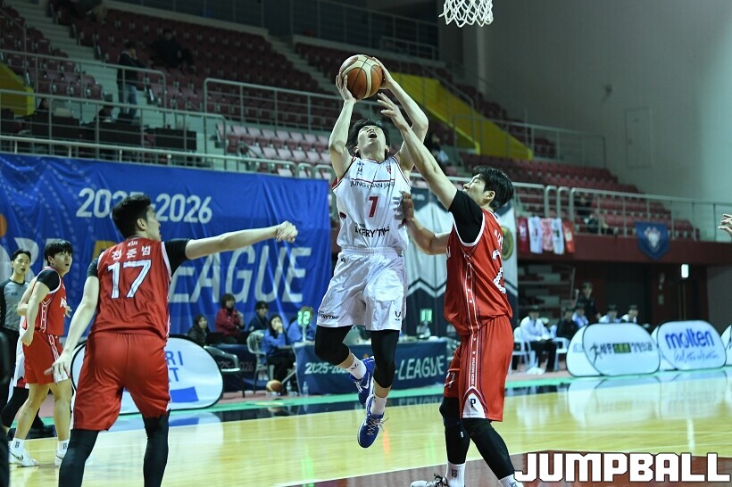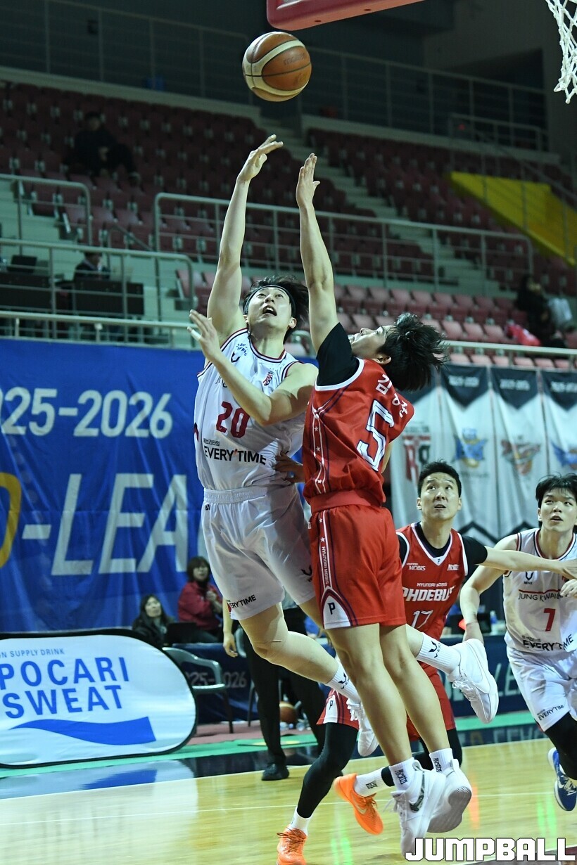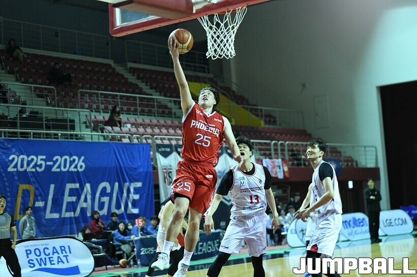 [점프볼=용인/유용우 기자] 18일 경희대 국제캠퍼스 선승관에서 열린 2025-2026 KBL D리그 안양 정관장과 울산 현대모비스의 6강 플레이오프 경기, 정관장이 86-78로 모비스에 승리하며 4강에 진출했다.