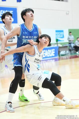 [점프볼=이천/박상혁 기자] 20일 이천 LG챔피언스파크에서 열린2024-2025 KBL D리그 한국가스공사와 삼성의 경기, 삼성 임동언이 하이파이브를 하고 있다.