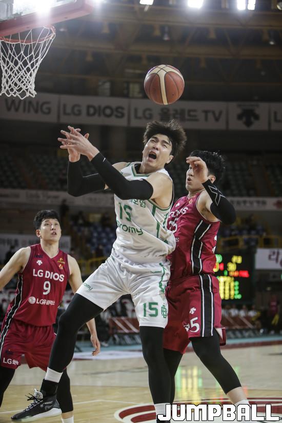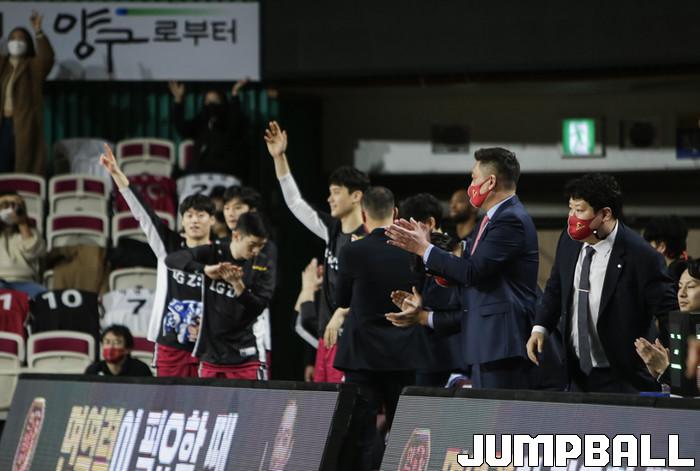 [점프볼=정을호 기자]  5 창원실내체육관에서 열린 2020-2021 현대모비스 프로농구  창원LG 원주 DB 경기, 창원 LG 원주 DB 91-90으로 승리하였다. 창원 LG 원주 DB 경기화보