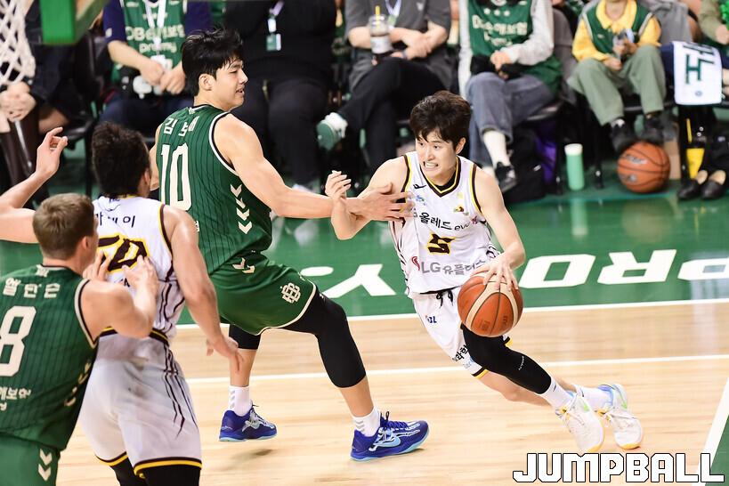 [점프볼=원주/박상혁 기자] 8일 원주 DB 프로미 아레나에서 열린 2025-2026 LG전자 프로농구 원주 DB와 창원 LG의 경기, LG 양준석이 돌파를 시도하고 있다.