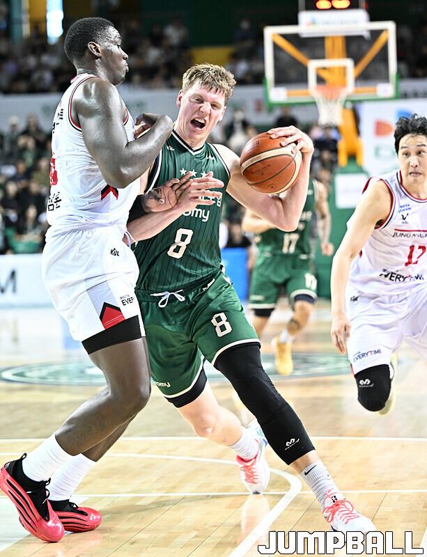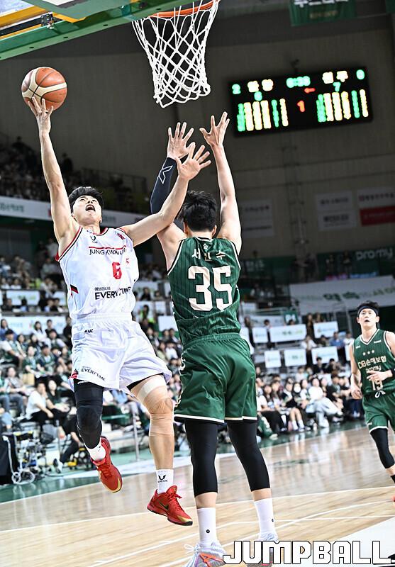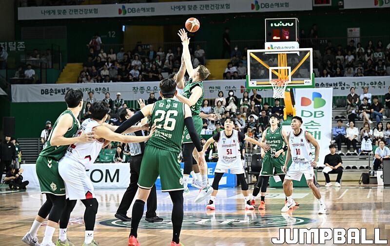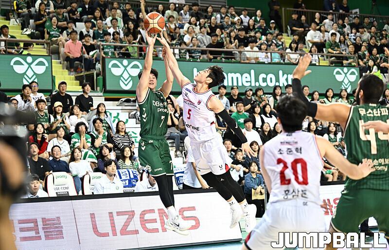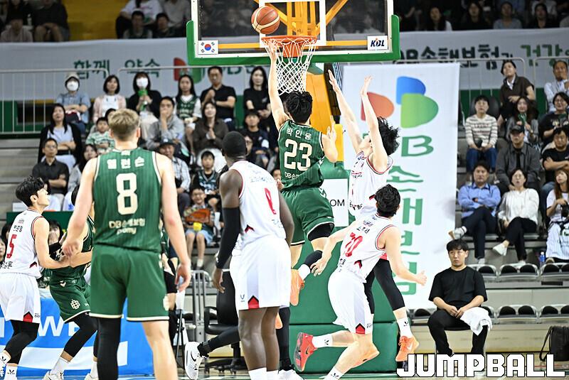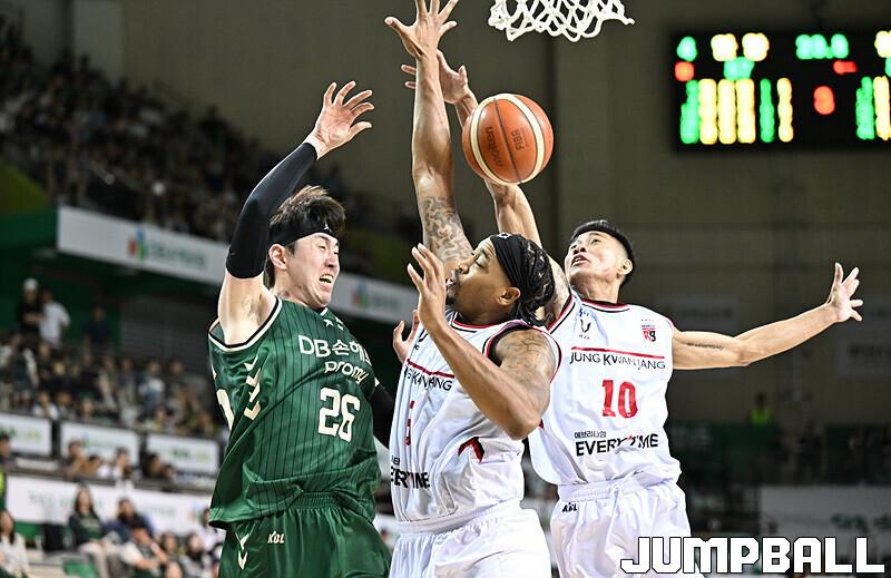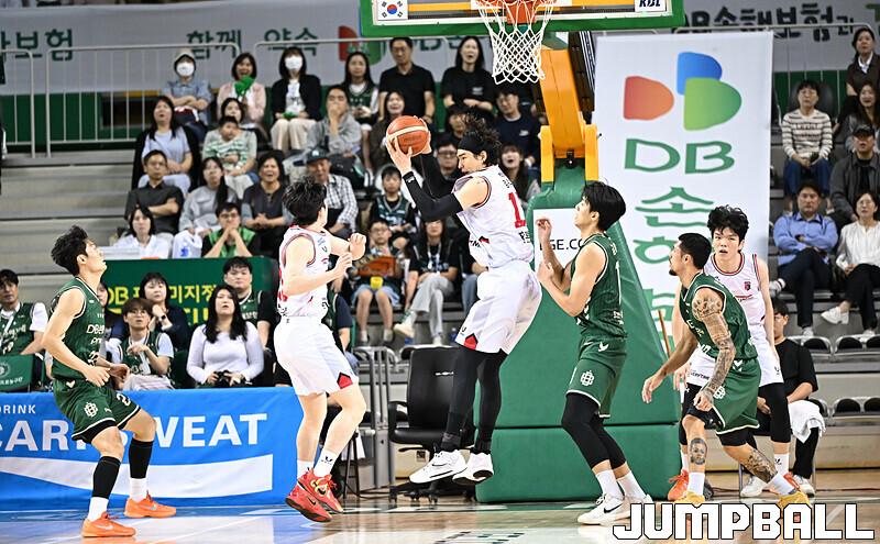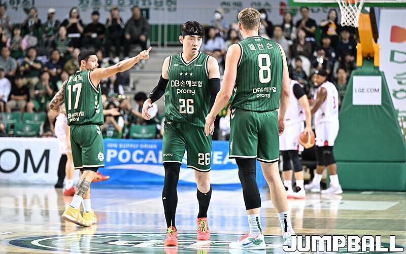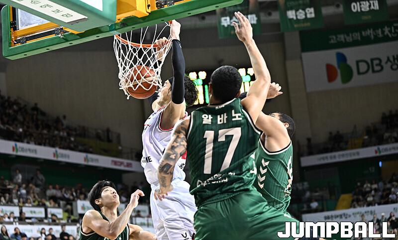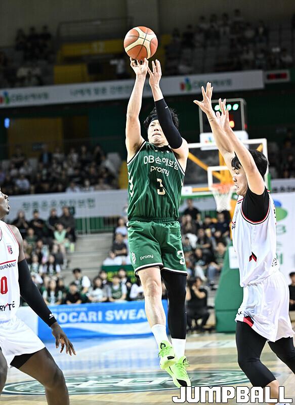[점프볼=원주/문복주 기자] DB는 8일 원주 DB프로미아레나에서 열린 2025-2026 LG전자 프로농구 1라운드 경기에서 안양 정관장을 75-69로 승리 했다. DB의 이선 알바노가 18점 4어시스트로 맹활약을 펼쳤고, 최성원-강상재-이정현 삼각편대는 총 29점을 합작하며 승리에 힘을 보탰다.