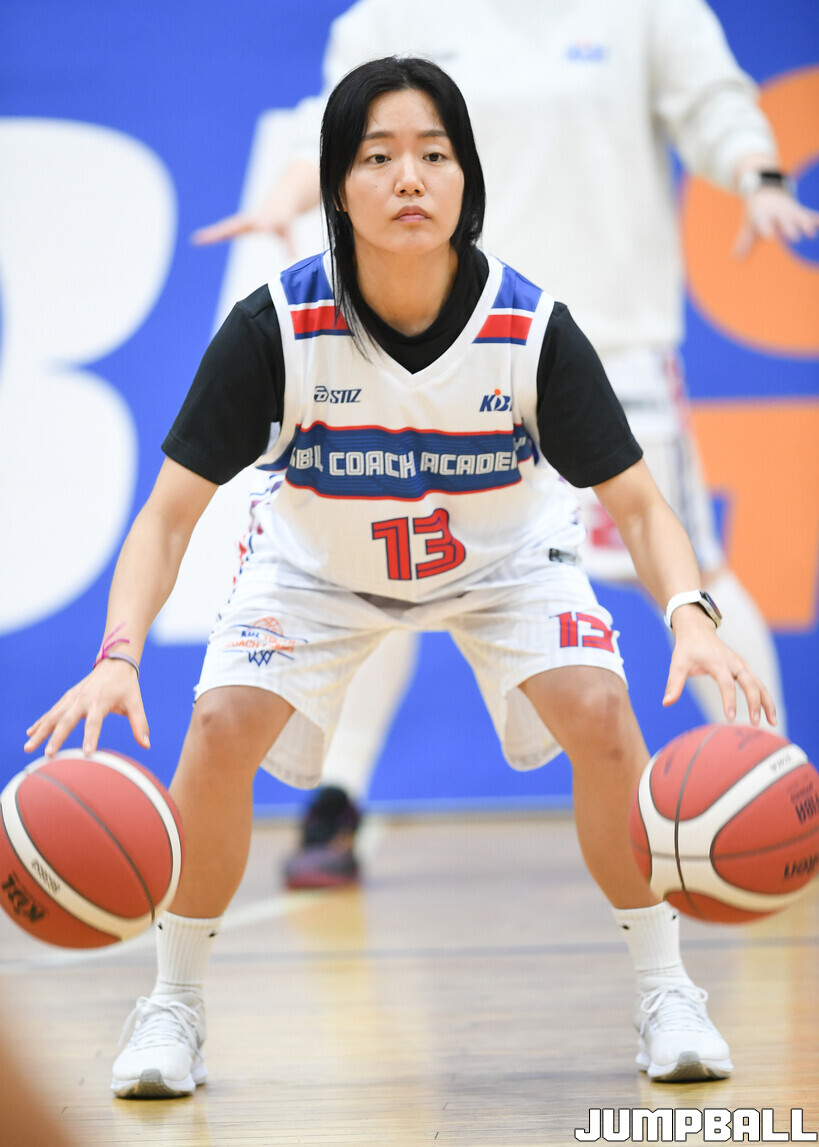 신현나 교사는 두 개의 공을 양손으로 드리블하는 것부터 레이업, 원핸드슛까지 안정적으로 구사하며 김도수 해설위원으로부터 박수받았다.