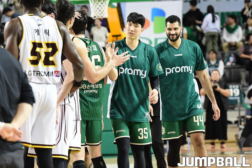 [점프볼=원주/박상혁 기자] 8일 원주 DB 프로미 아레나에서 열린 2025-2026 LG전자 프로농구 원주 DB와 창원 LG의 경기, DB가 LG에 66-59로 승리했다.