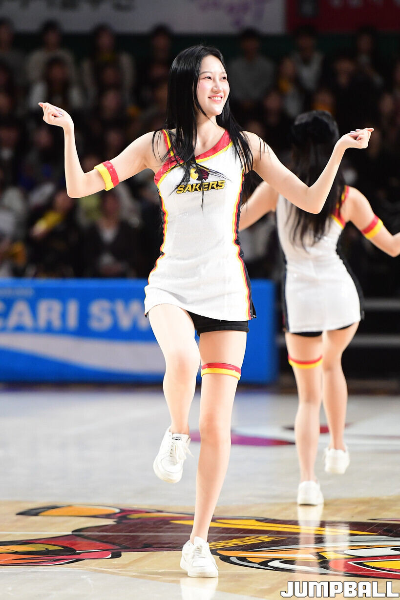 [점프볼=창원/박상혁 기자] 25일 창원체육관에서 열린 2025-2026 LG전자 프로농구 창원 LG와 안양 정관장의 경기, LG 치어리더가 세바라기와 함께 LG 승리를 위해 열띤 응원을 펼쳤다.