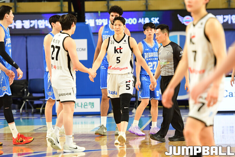 [점프볼=대구/박상혁 기자] 17일 대구체육관에서 열린 2025-2026 LG전자 프로농구 대구 한국가스공사와 수원 KT의 경기, KT가 데릭 윌리엄스와 이두원, 강성욱, 김선형의 활약으로 벨란겔과 김준일, 정성우, 라건아가 분전한 한국가스공사에 98-86으로 승리했다.
