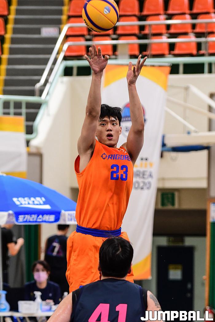 [점프볼=양산/박상혁 기자] 25일 양산실내체육관에서 열린 ' KBA 2020 코리아투어 양산대회' 1일차 경기, 오픈부 티처스 이승훈이 2점슛을 시도하고 있다.