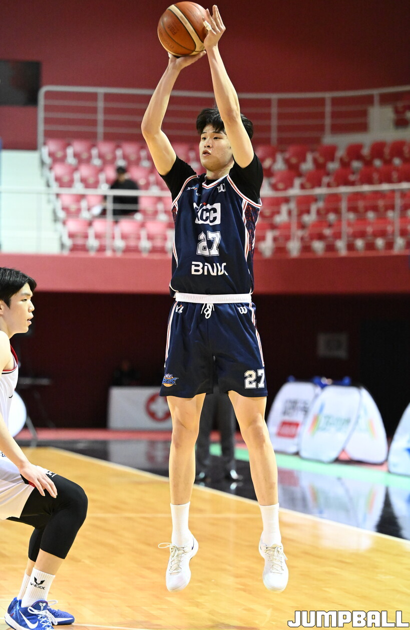 12일 경희대학교 국제캠퍼스 선승관에서 열린 2025-2026 KBL D리그 KCC와 원주 DB의 맞대결. 강태현이 자신의 진가를 뽐냈다.