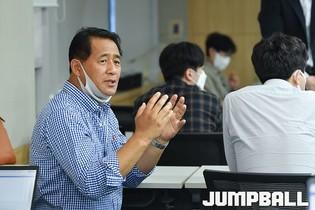[JB포토] 실린더룰에 대한 의견 나누는 추일승 SPOTV 해설위원