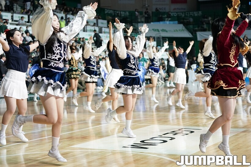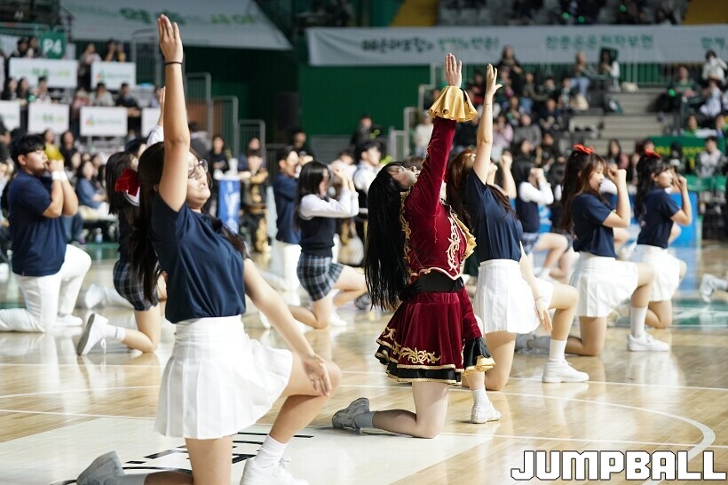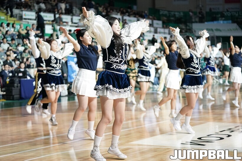[점프볼=원주/유용우 기자] 15일 원주 DB 프로미 아레나에서 열린 2025-2026 LG전자 프로농구 원주 DB와 창원 LG의 경기, DB 치어리더들이 응원전을 펼치며 홈팬들과 호흡했다. 하프타임엔 원주 지역 고등학생 응원 연합팀이 공연을 펼치며 DB의 승리를 기원했다.